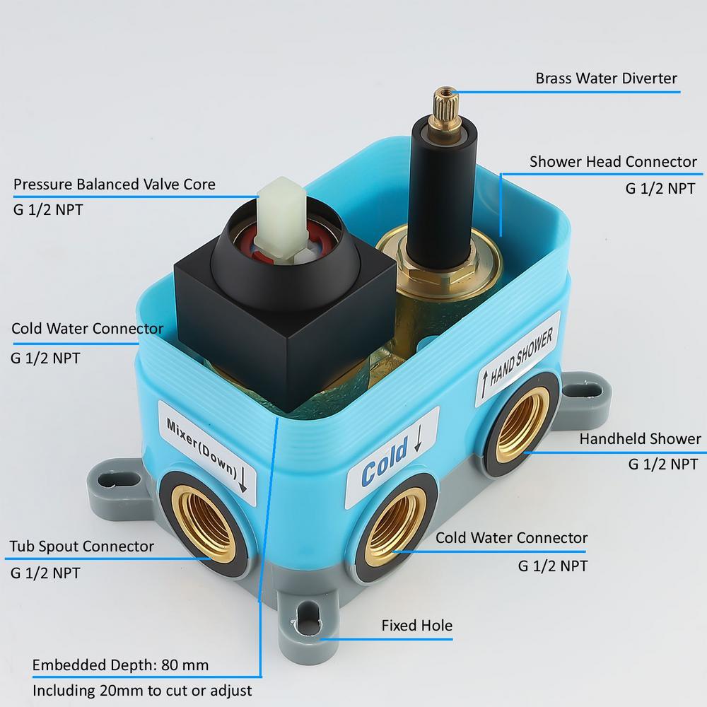 • Easy to Install -- The standard US NPT1/2 connector is compatible with most existing shower systems' pipes. Please install the shower spray combo systems step by step as shown on the attached instruction manual. DIY to install this faucet shower set is convenient. Also, to ensure the safe and fast installation process, it's recommended to hire an experienced plumber to complete the installation so soon you could enjoy the relax and massage bath.