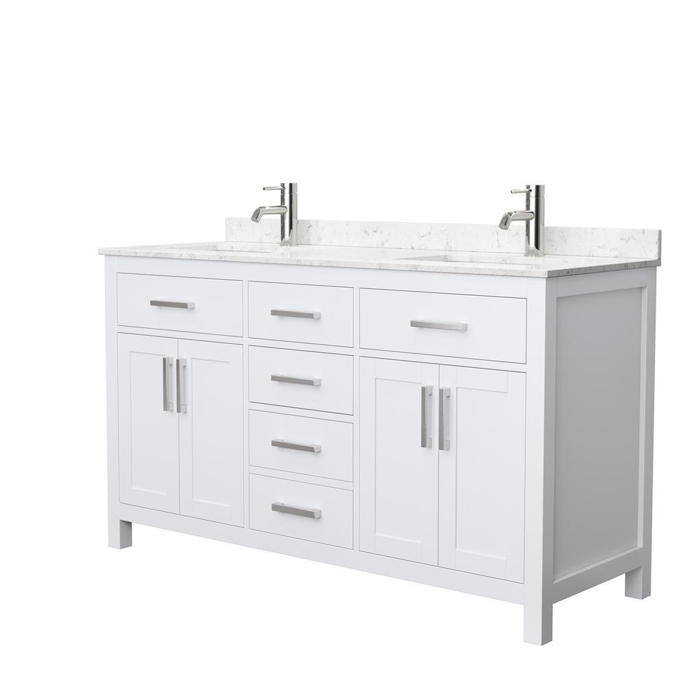 Fantastic value and classic design. The elegant Beckett vanity has it all, with quality touches like brushed metal hardware accents, dove-tailed drawers, cultured marble counters and soft-close doors and drawers. Ample storage and a double-depth lower drawer give you plenty of room for those bathroom necessities. Do your bathroom right, with the beautiful Beckett vanity series.