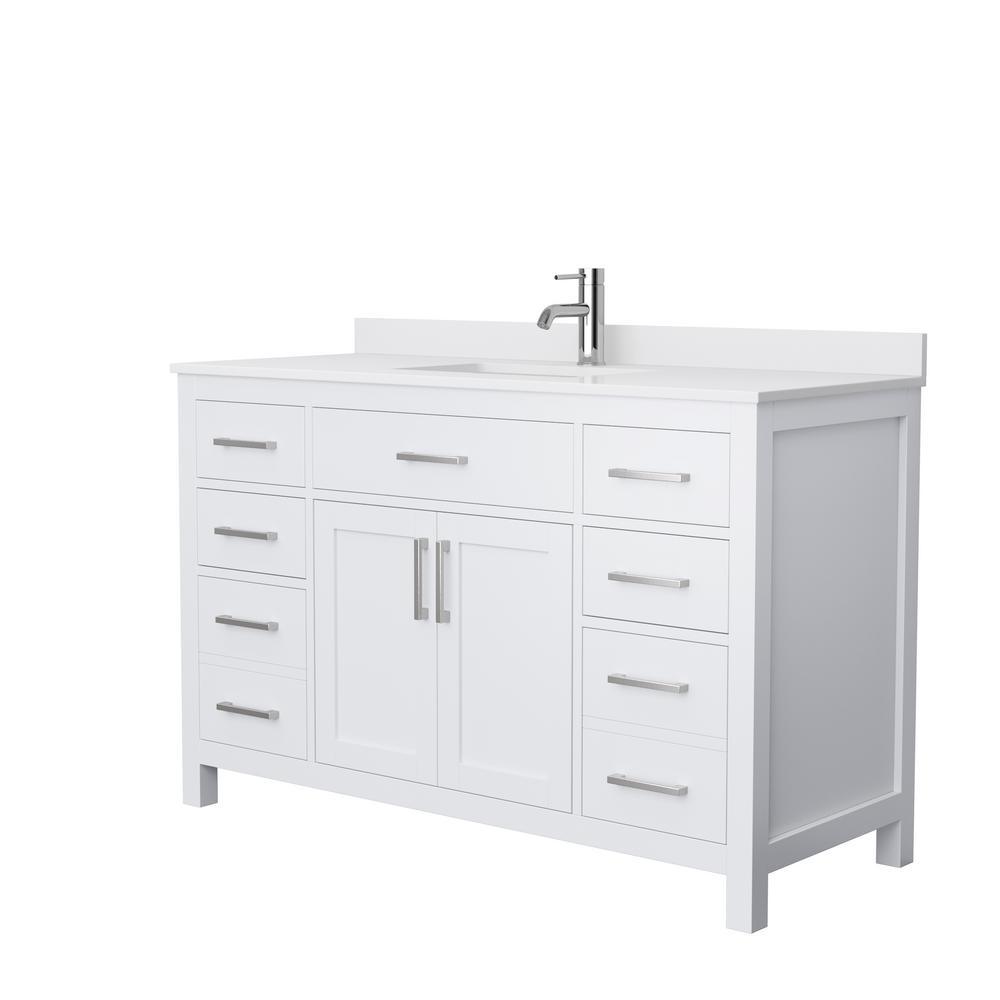 Fantastic value and classic design. The elegant Beckett vanity has it all, with quality touches like brushed metal hardware accents, dove-tailed drawers, cultured marble counters and soft-close doors and drawers. Ample storage and a double-depth lower drawer give you plenty of room for those bathroom necessities. Do your bathroom right, with the beautiful Beckett vanity series.
