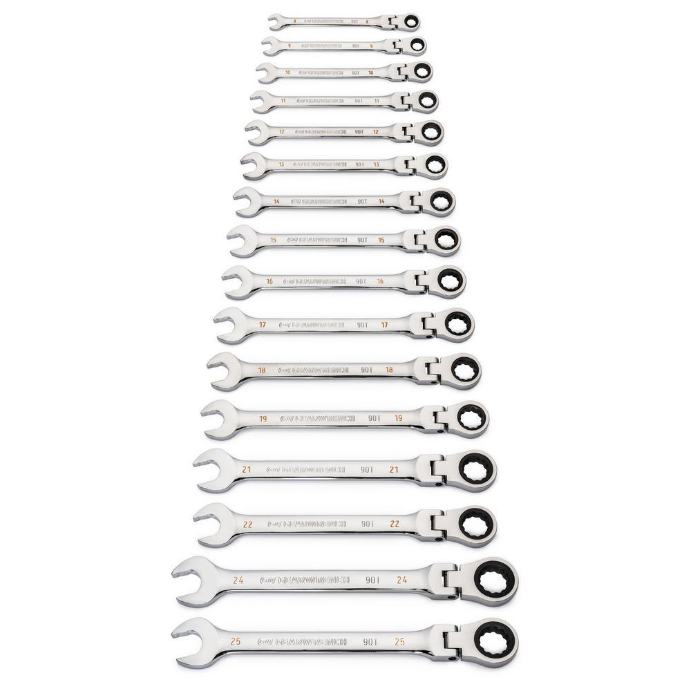 GEARWRENCH 90-tooth ratcheting wrench swing arc of just 4° turns fasteners in extremely tight spaces. Longer, wider beam delivers improved reach, leverage and comfort. Large color-coded SAE/metric markings make size identification easy. All exceed ASME performance specs and come with the trusted GEARWRENCH limited lifetime warranty.