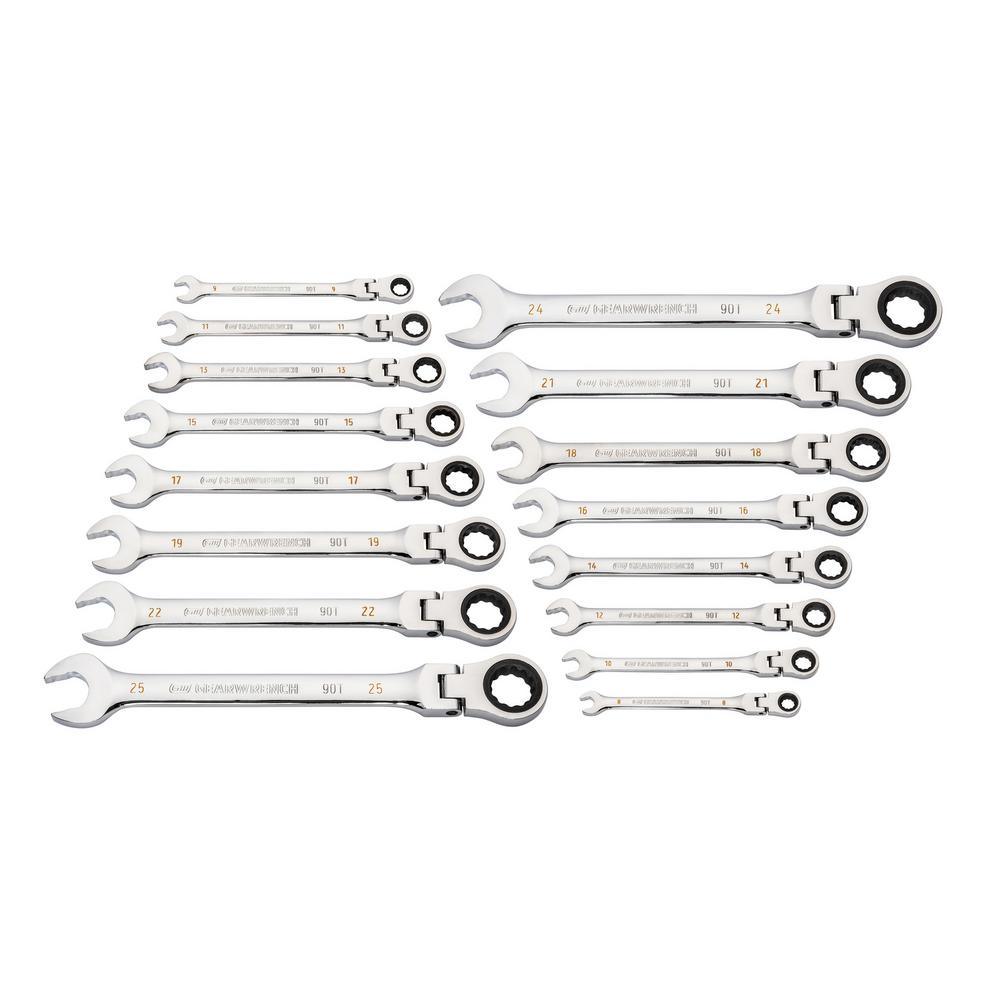 90-Tooth 12-Point Flex Head Ratcheting Combination Metric Wrench Set (16-Piece)