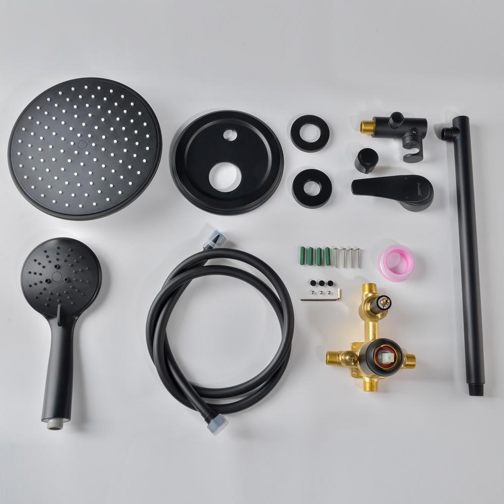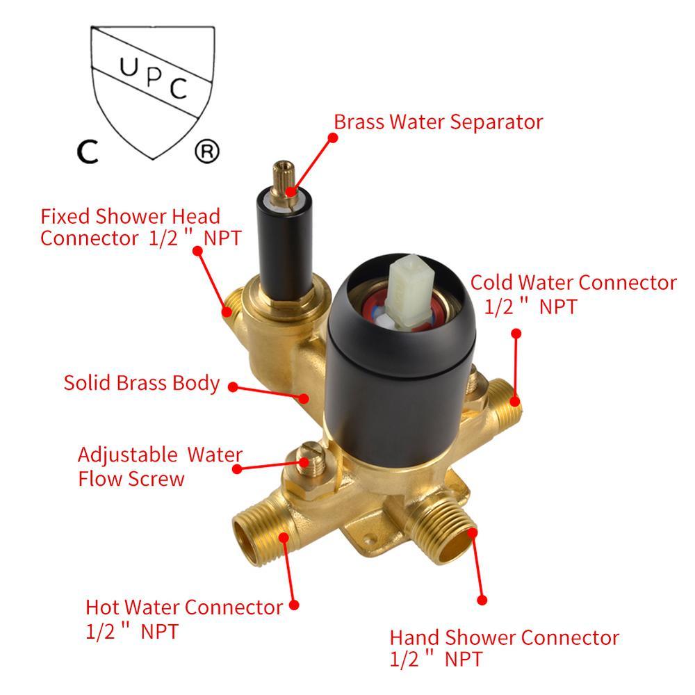 • Ceramic disc cartridge smooth, long-lasting drip-free operation cUPC ceramic disc cartridge, single lever design for effortless flow and temperature control, come with solid brass shower valve, rainfall shower head, 5-funtion hand shower, 15.7 in. extra-long shower arm, shower holder and other installation necessary parts