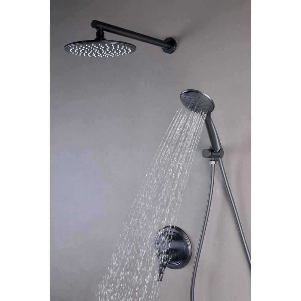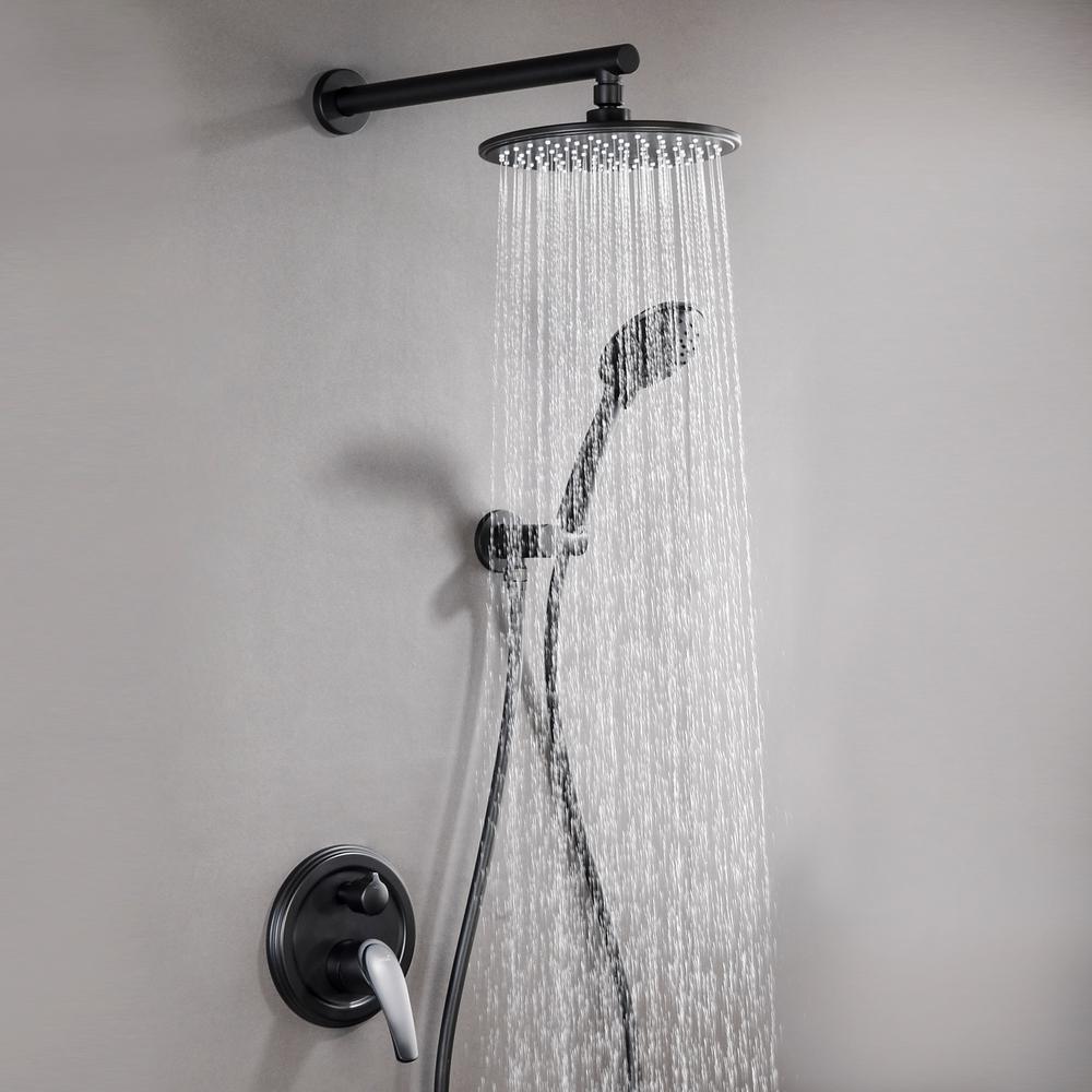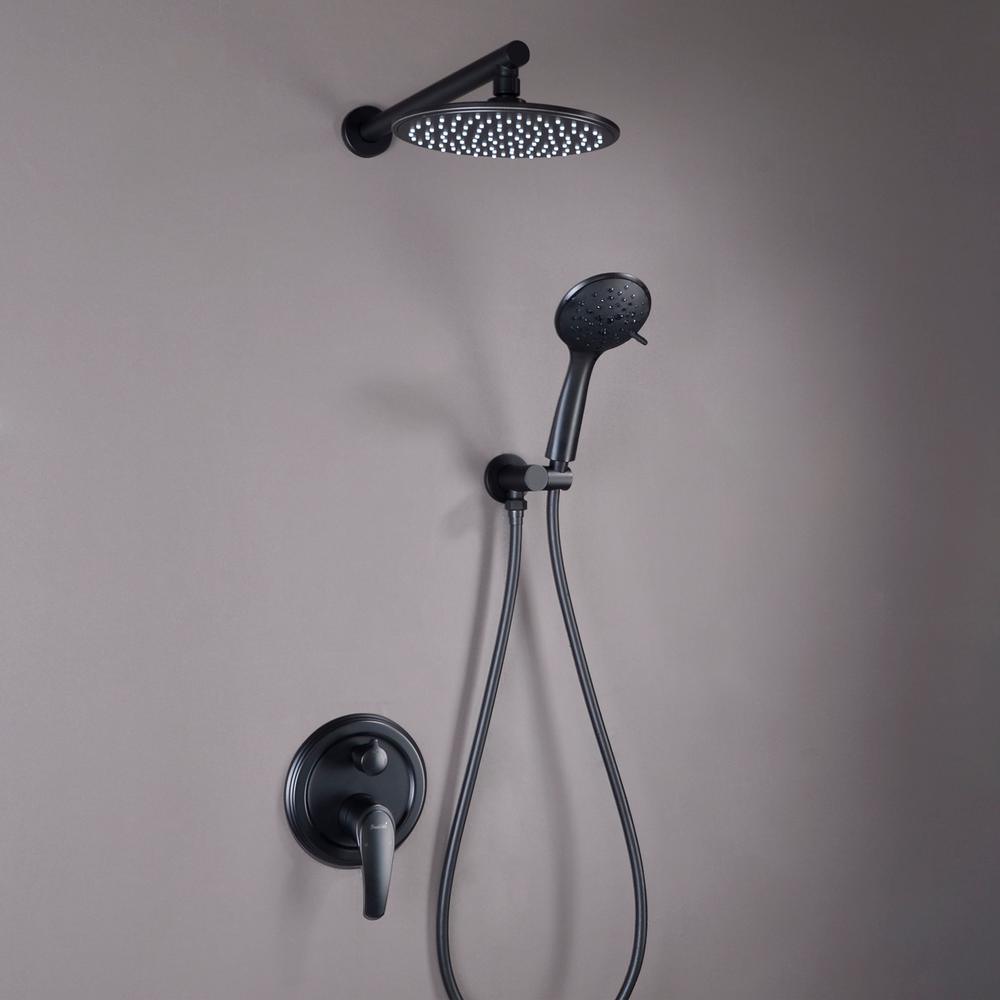 5-Spray Patterns with 2.66 GPM 9 in. Wall Mount Dual Shower Heads with Pressure Balance Round-In Valve in Matte Black