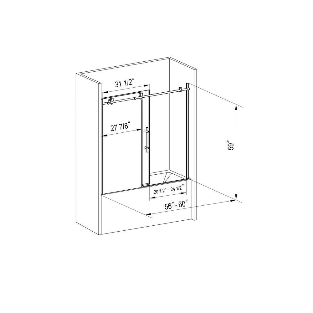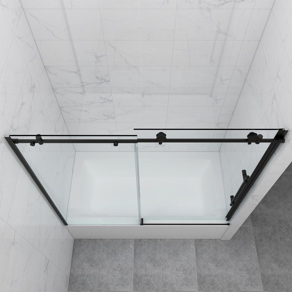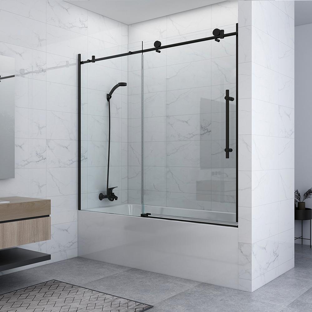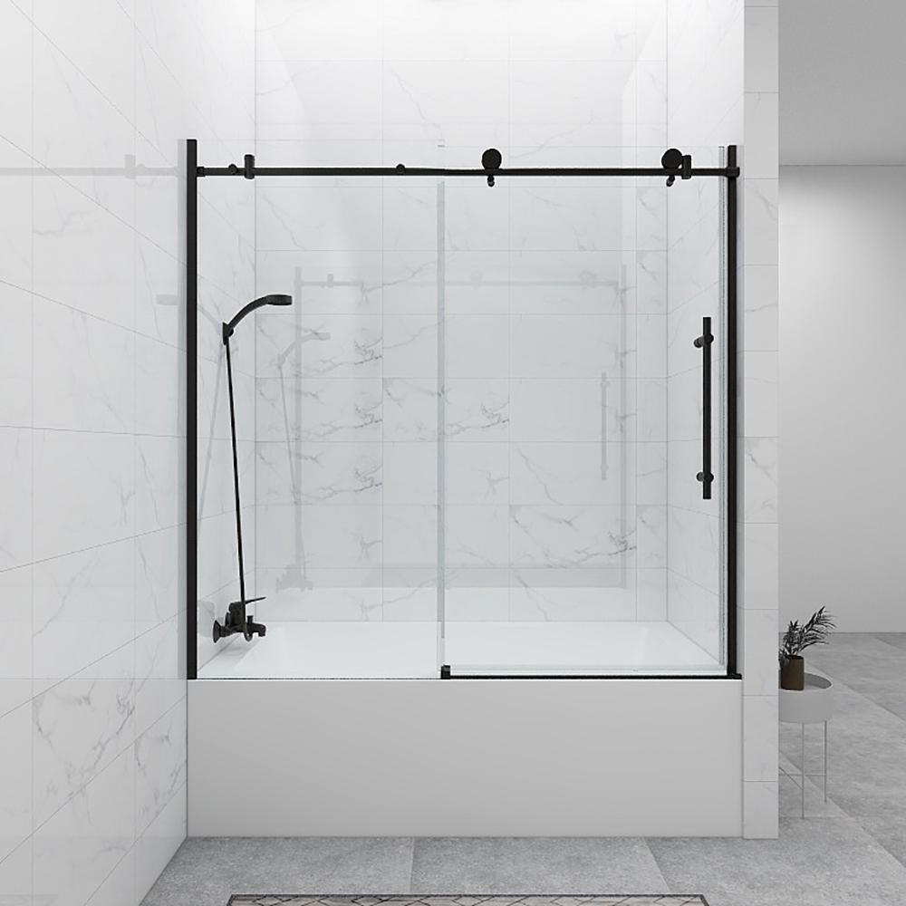 60 in. W x 59 in. H Sliding Frameless Bathtub Door in Matte Black with Clear Glass and Handle