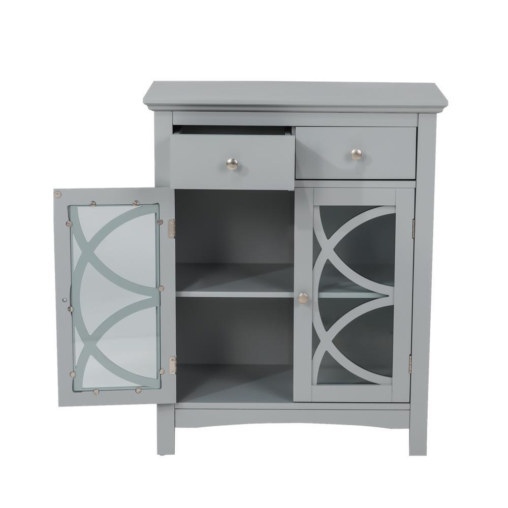 26 in. W x 12.4 in. D x 32.11 in. H Freestanding Floor Cabinet with Double Doors and Drawer in Gray