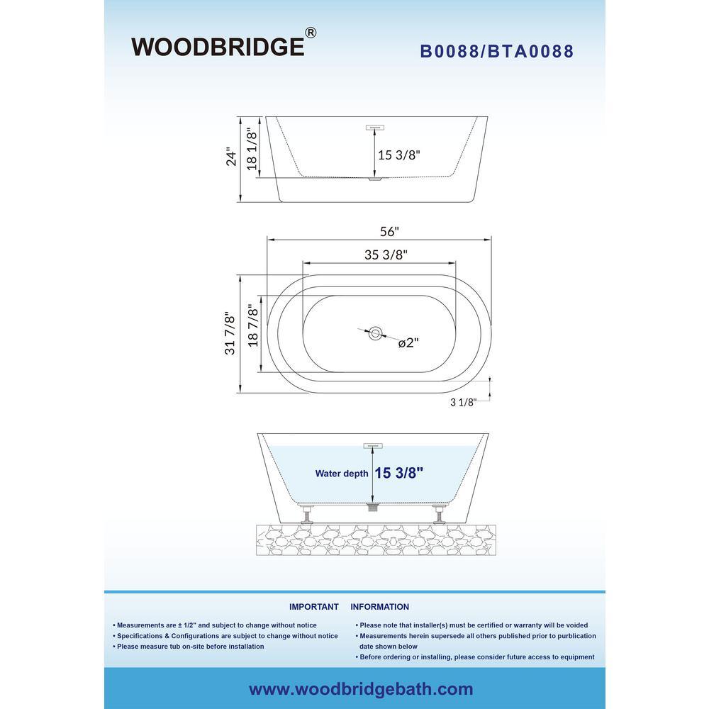 - Premium quality construction: WOODBRIDGE bathtub is made out of 100% high gloss white Lucite acrylic and reinforced with Ashland resin and fiberglass all of these are top quality material which are rarely used by others due to a relatively high cost