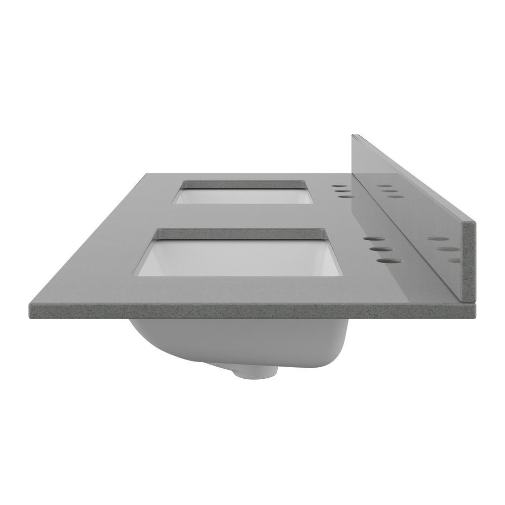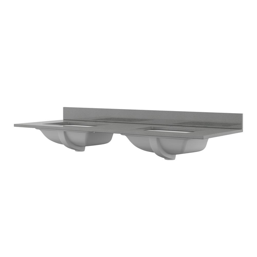 61 in. W x 22 in. D Quartz Double Basin Vanity Top in Galaxy Grey with White Basins