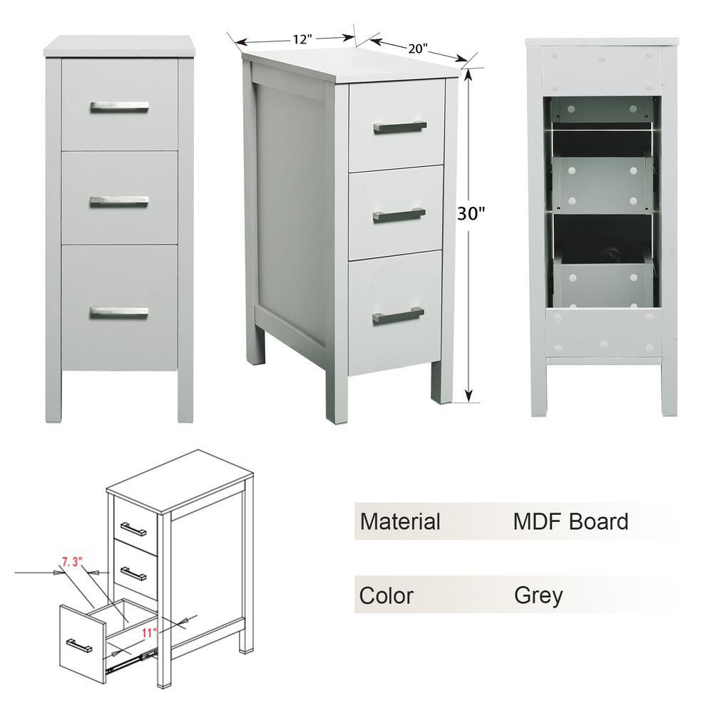 20 in. W x 12 in. D x 30 in. H Bathroom Vanity Cabinet Linen Cabinet with Three Drawers in Gray