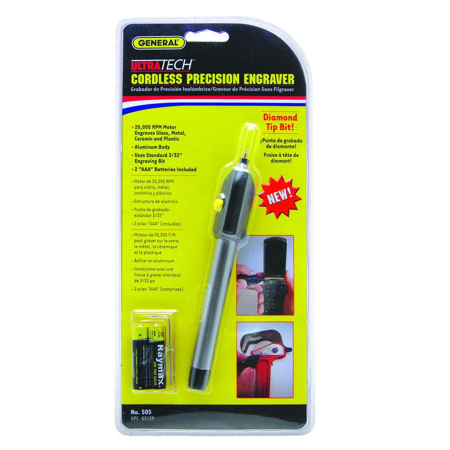 Cordless precision engraver with a 3/32-in precision diamond tip bit is ideal for marking tools, sporting goods, toys, jewelry and other valuables