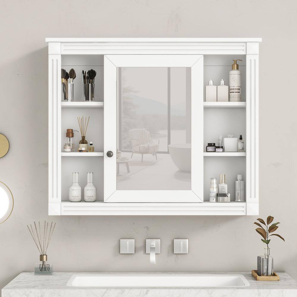 Enhance your bathroom with our elegant 35 x 29 in. Rectangular MDF Medicine Cabinet. Crafted for functionality and style, this surface-mounted cabinet offers optimal storage in tight spaces, featuring a built-in mirror and sophisticated design. Ideal for any bathroom, it combines high-quality materials with a sleek, modern look to keep your space organized and stylish.