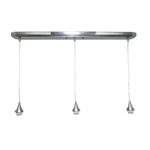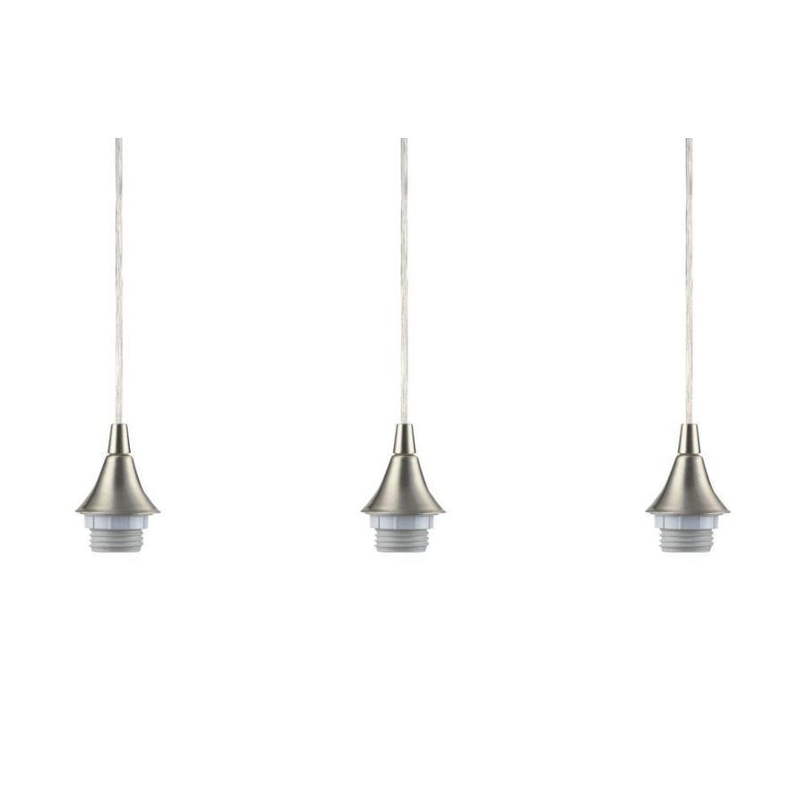 Brushed nickel finish 3 light pendant fitter is fully customizable Pair with shades of your choice to complete your style Recommended use of three 60-watt max medium base bulbs (not included) Damp rated, ideal for above your kitchen bar, dining room, or kitchen island Adjustable cords allows you to customize the length, up to 56-in hanging height Adjustable length allows you to hang all lights at one level, or stagger them to create your own custom look