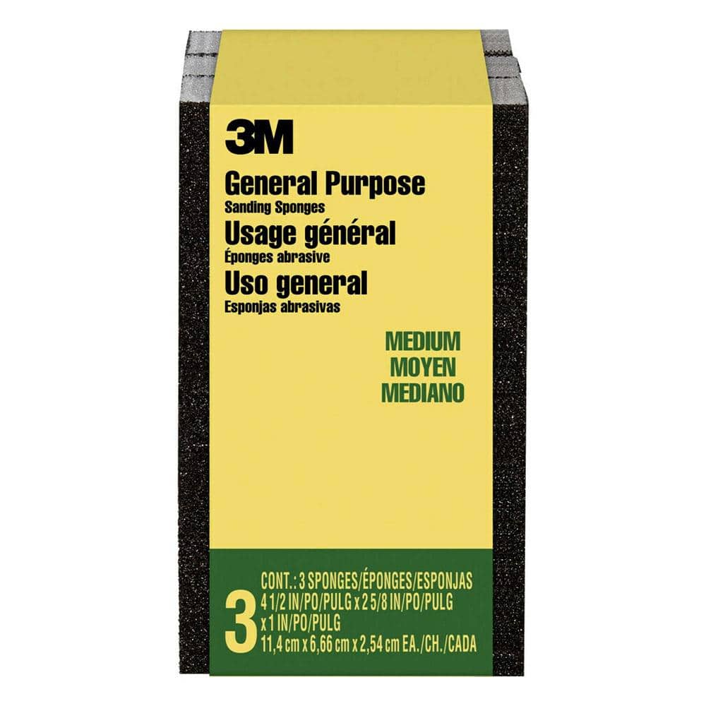 3M 4-1/2 in. x 2-5/8 in. x 1 in. Medium-Grit Sanding Sponge (3 Sponge-Pack)
