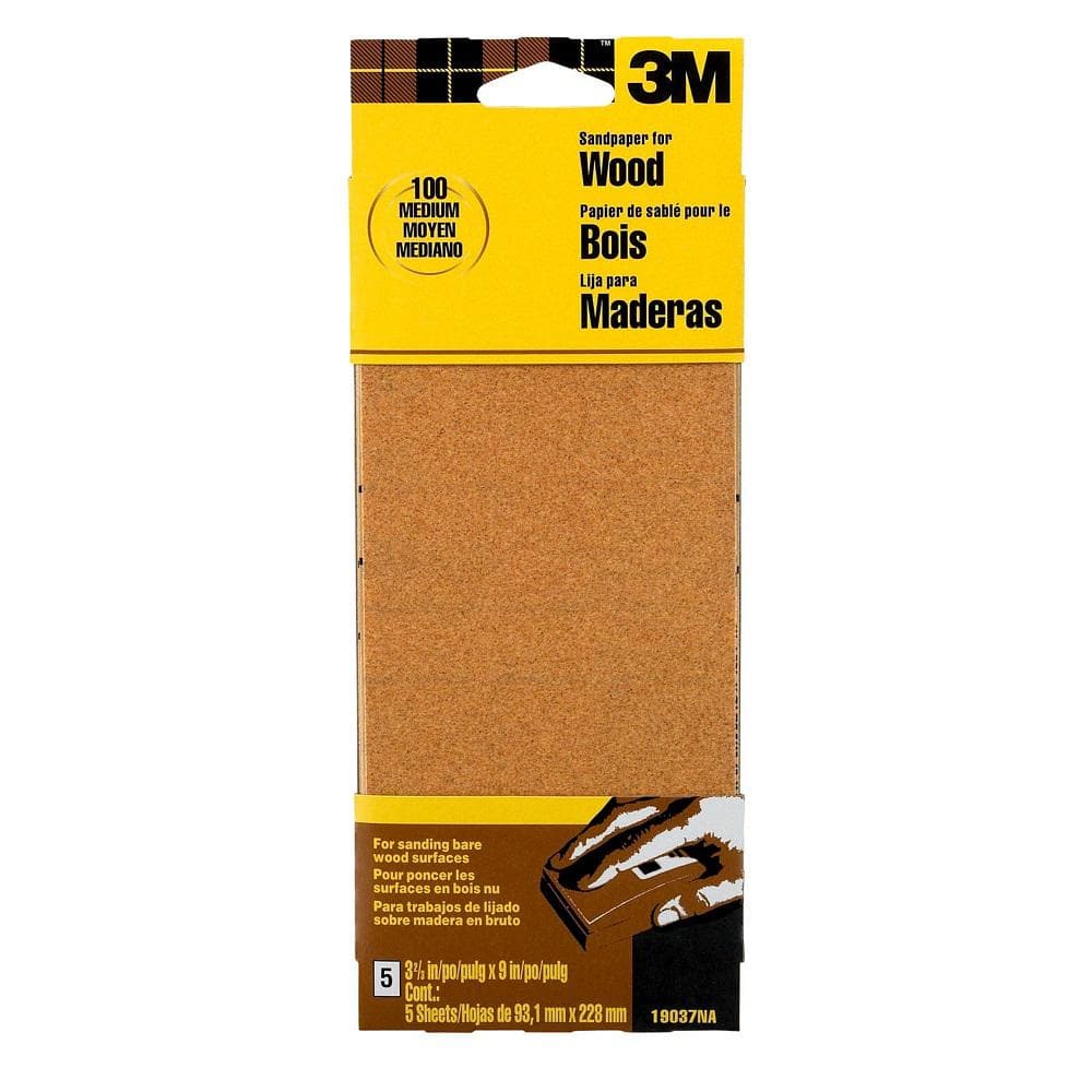 3M Garnet 3.7 in. x 9 in. Medium 100-Grit Sheet Sandpaper (6-Sheets/Pack)