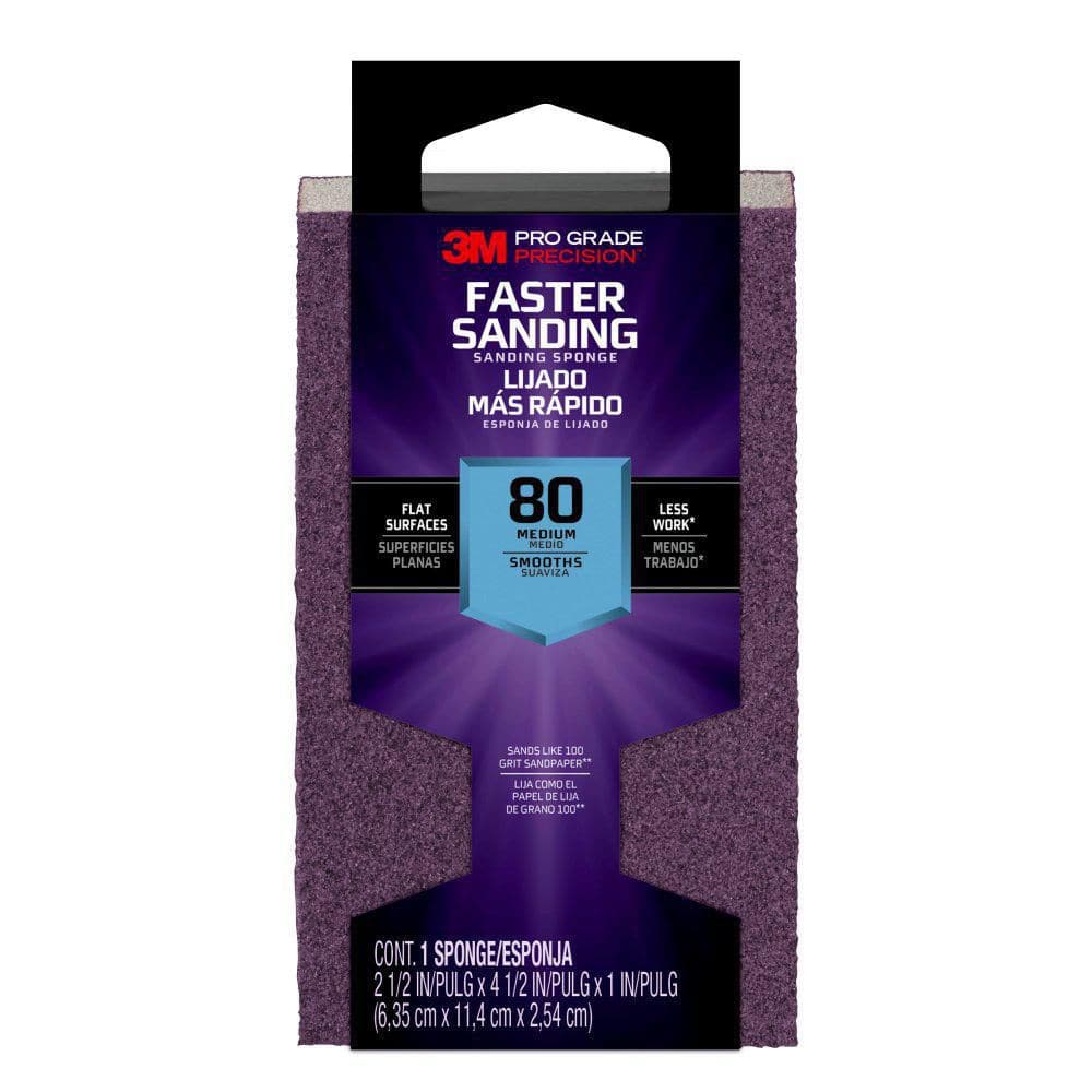 3M Pro Grade Precision 2-1/2 in. x 4-1/2 in. x 1 in. 80-Grit Medium Block Sanding Sponge