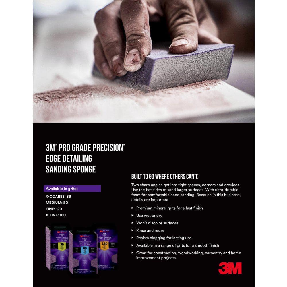 3M Pro Grade Precision 2-7/8 in. x 4-1/2 in. x 1 in. 180-Grit X-Fine Dual Angle Edge Detailing Sanding Sponge