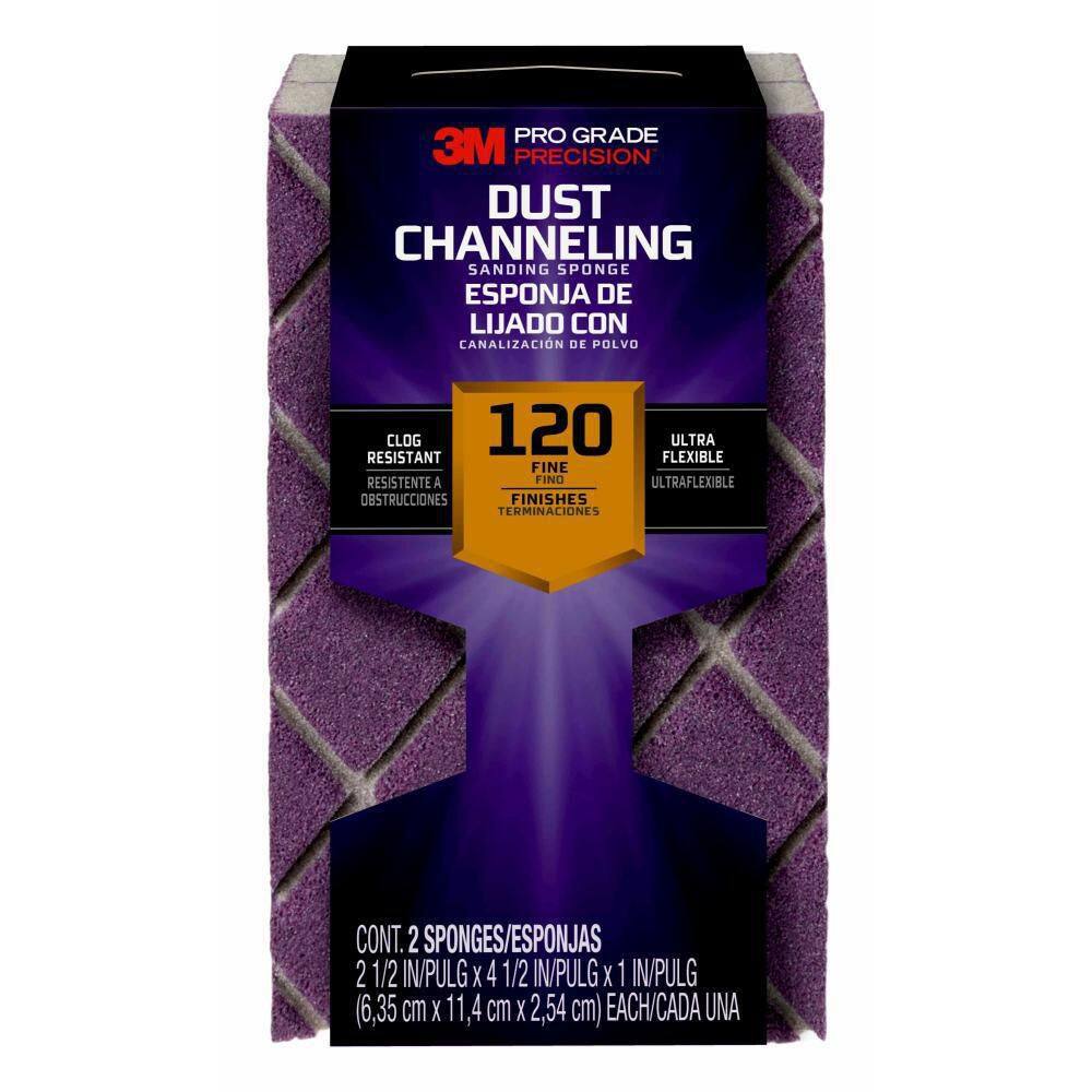 The 3M Pro Grade Precision 120-Grit Fine Dust Channeling Sanding Sponge offers a dual-purpose design, perfect for intricate detail work and flat sanding. With premium mineral composition and a durable foam core, it efficiently channels dust away from the surface, resists clogging, and extends the sponge's life for multiple uses.