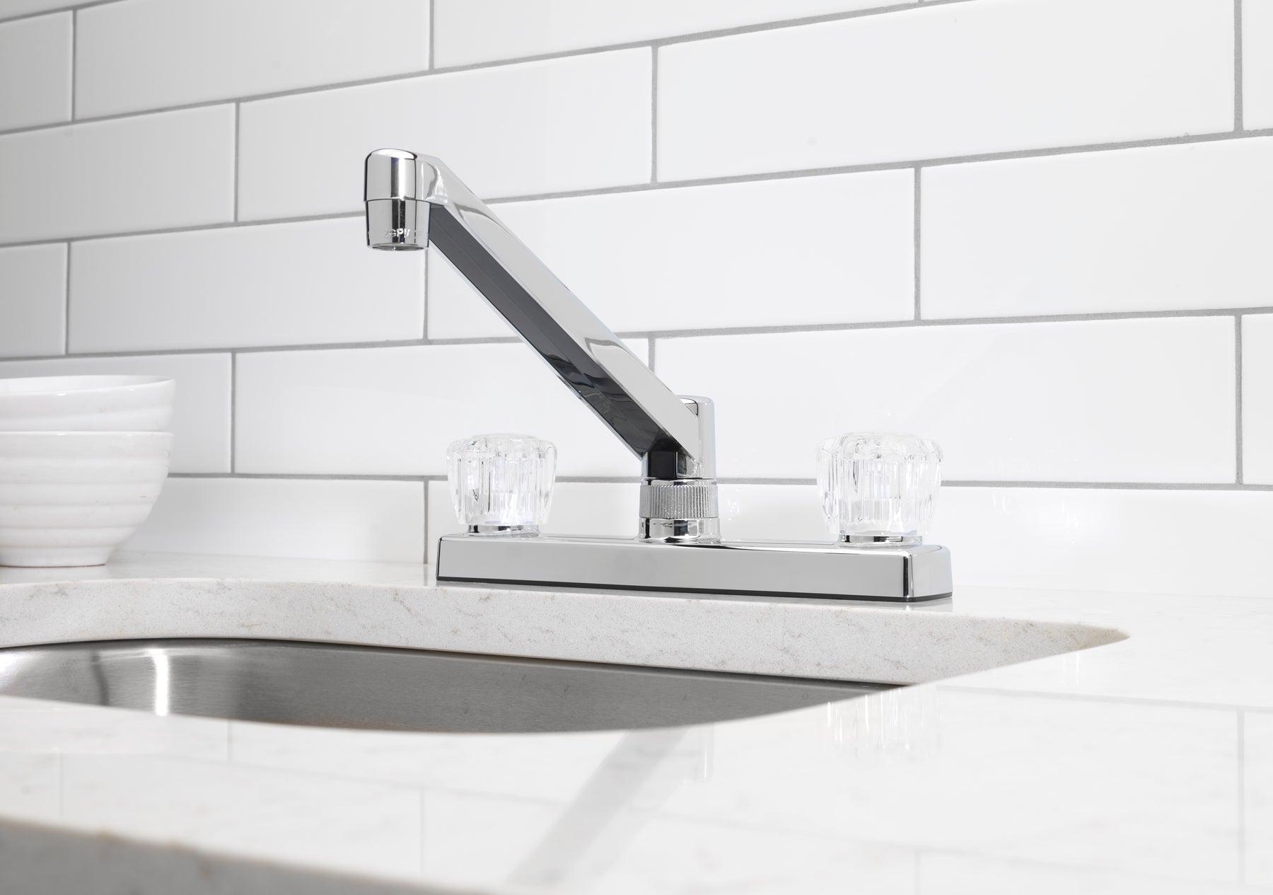 Mainstays 8" Widespread Dual Acrylic Handle Kitchen Faucet, Chrome
