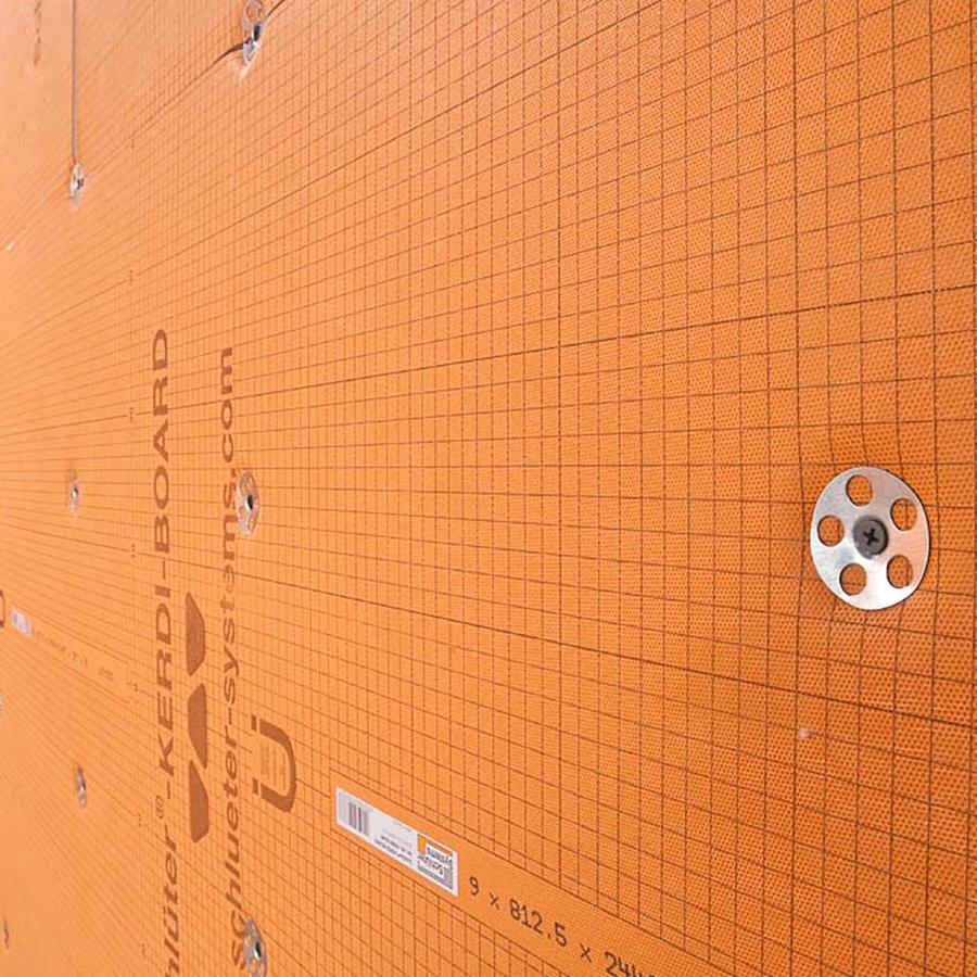 Waterproof and dimensionally stable Panel may be used for bonded waterproofing assemblies for tile with proper preparation of seams Extruded polystyrene foam panel Lightweight, easy to handle and transport Contains no cement or fiberglass for a dust-free installation Cut to size with a utility knife Fasten directly to studs with Kerdi-Board screws and washers (sold separate) Panel measurements: 1/2-in (thick) x 32-in x 48-in
