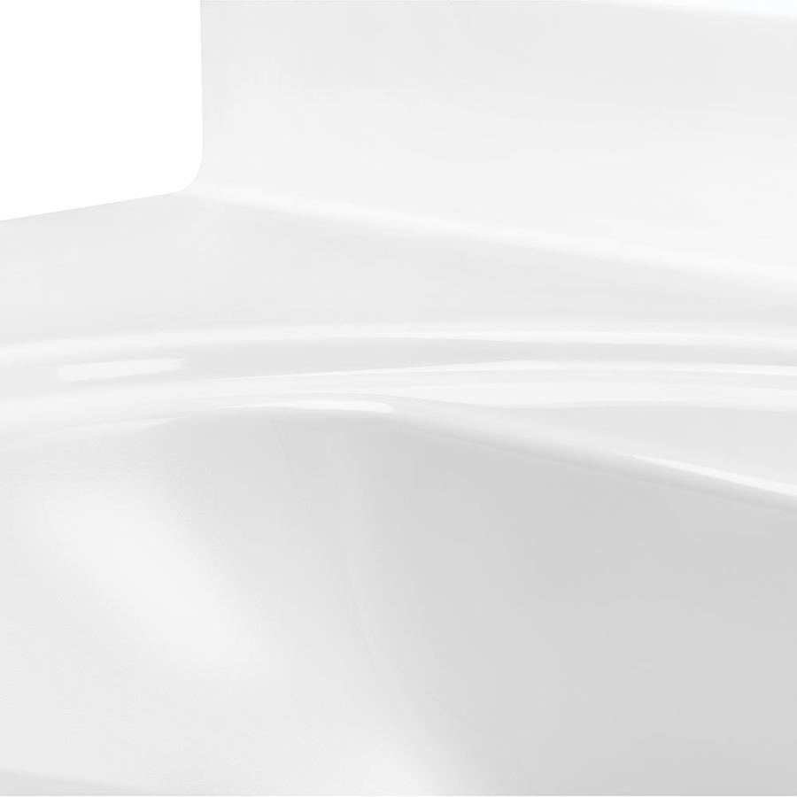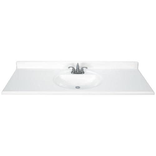 White cultured marble vanity top blends well with most bath decor Integral oval bowl for a seamless one-piece design 61-in W x 22-in D vanity top Pre-drilled for 4-in centerset faucets for easy installation (faucet sold separately) Integrated backsplash protects walls from water damage Ogee edge profile offers a classic and traditional look Fits 60-in W x 21-in D vanity cabinets Matching side splash available (sold separately)