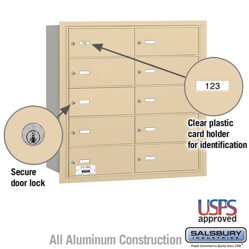 4B+ Horizontal Mailbox with 10 B Doors, Rear Loading, Sandstone Finish