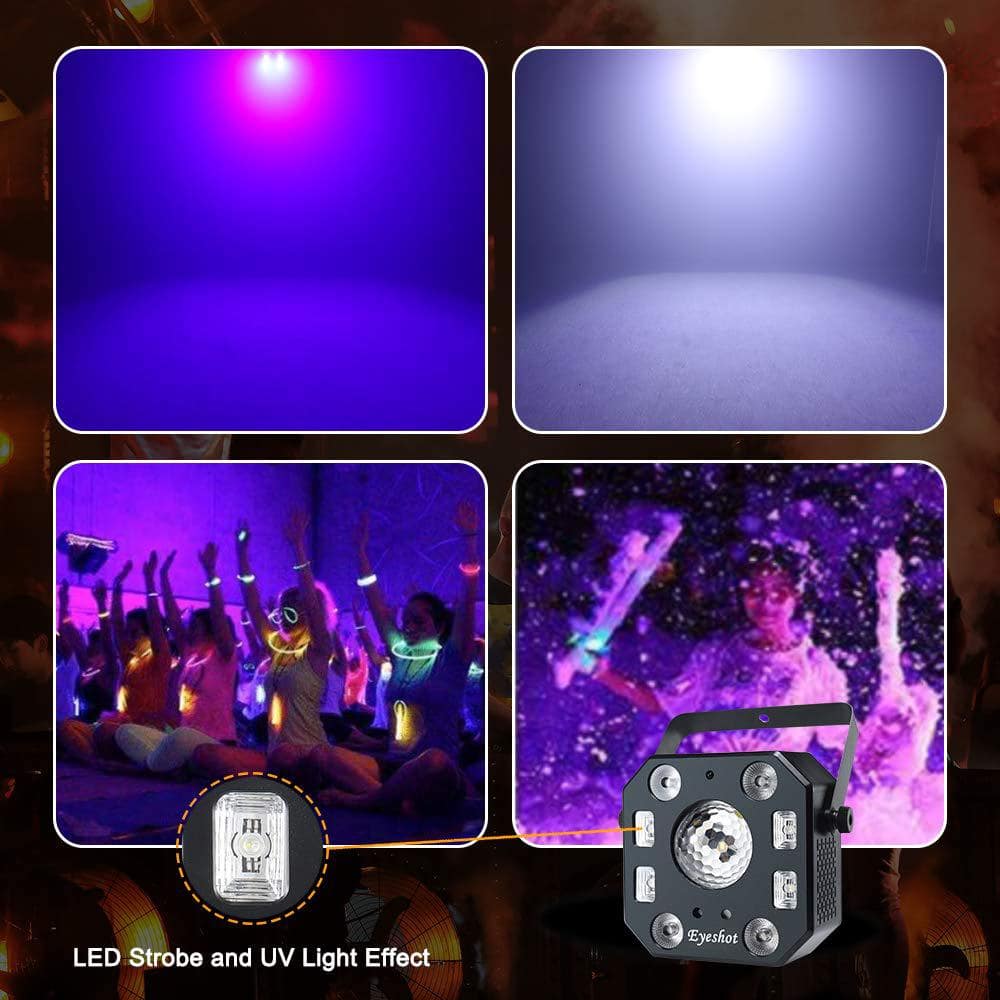 5 in 1 Stage Light Disco, Eyeshot with Magic Ball, Led Par Pattern Strobe Light with UV Effect, Remote and DMX Control