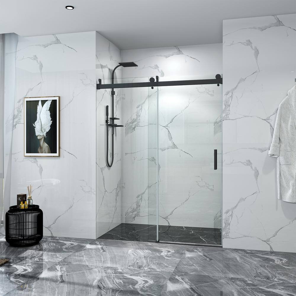 Upgrade your bathroom with this elegant Matte Black Sliding Frameless Shower Door. Featuring a soft-closing mechanism and durable clear tempered glass, this shower door combines modern style with reliable functionality. Its frameless design enhances the spaciousness of your bathroom while the premium hardware ensures long-lasting performance.