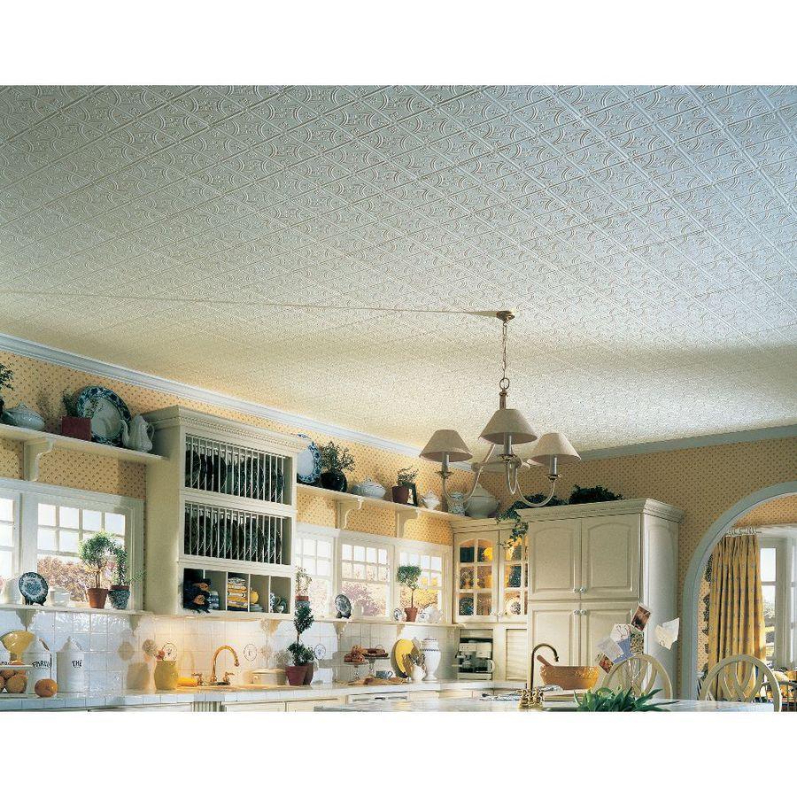 Armstrong Ceilings 12-in x 12-in TinLook TinTile 40-Pack White Metal/Tin Surface-Mount Acoustic Ceiling TIles