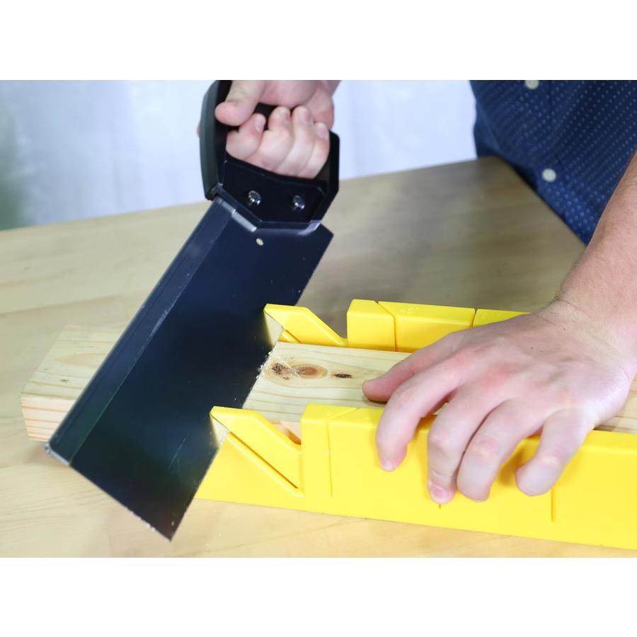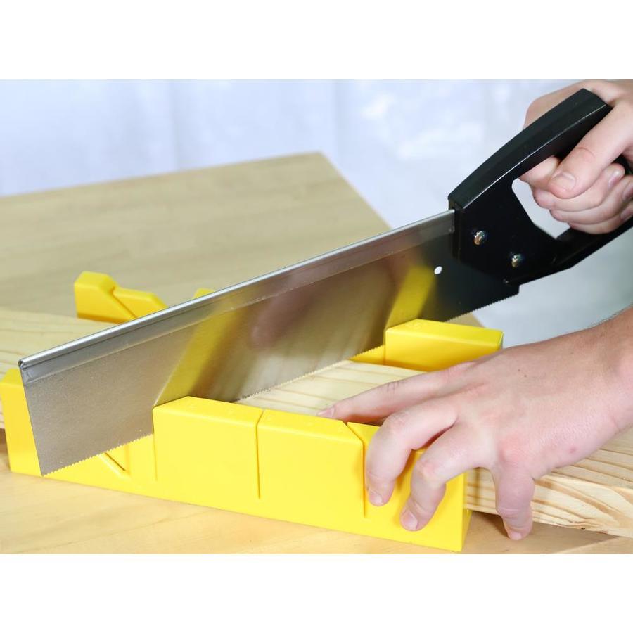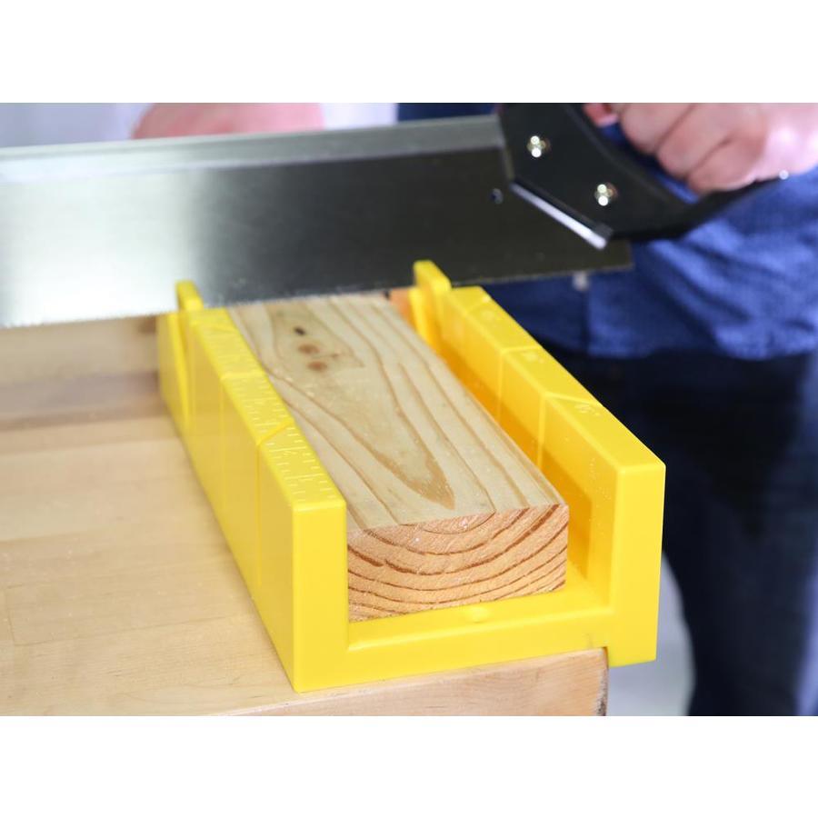 Built-in ruled edge for quick measurement Cuts both 45 ° and 90 ° miter angles Made from impact-resistant ABS plastic Made in USA