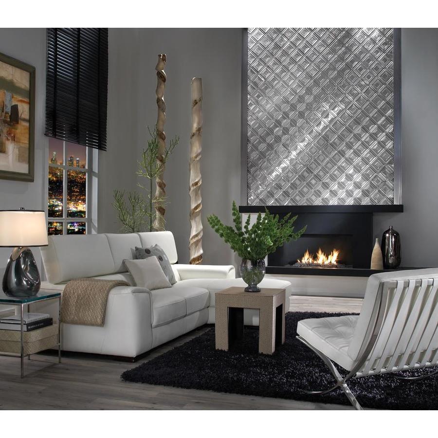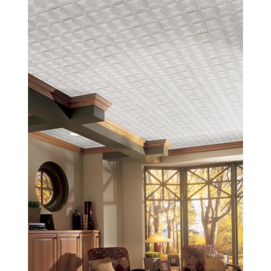 Real metal, coated to protect from rust Maximize your ceiling height with this surface mount ceiling panel Mold, mildew, and sag resistance Sold by the piece with each order individually packed and shipped Install direct to ceiling with Metallaire cone head nails #5400NWH (sold separately) Cornices are available (sold separately) in the same finish that can complement and accentuate the exquisite detail of your Metallaire ceiling Border filler panels are available (sold separately) that can be used around the edge of the room when less than full panels are needed Has a Class A fire rating Metallaire is available in 5 finishes, 12 patterns, and also in a 24-in x 24-in lay-in panel