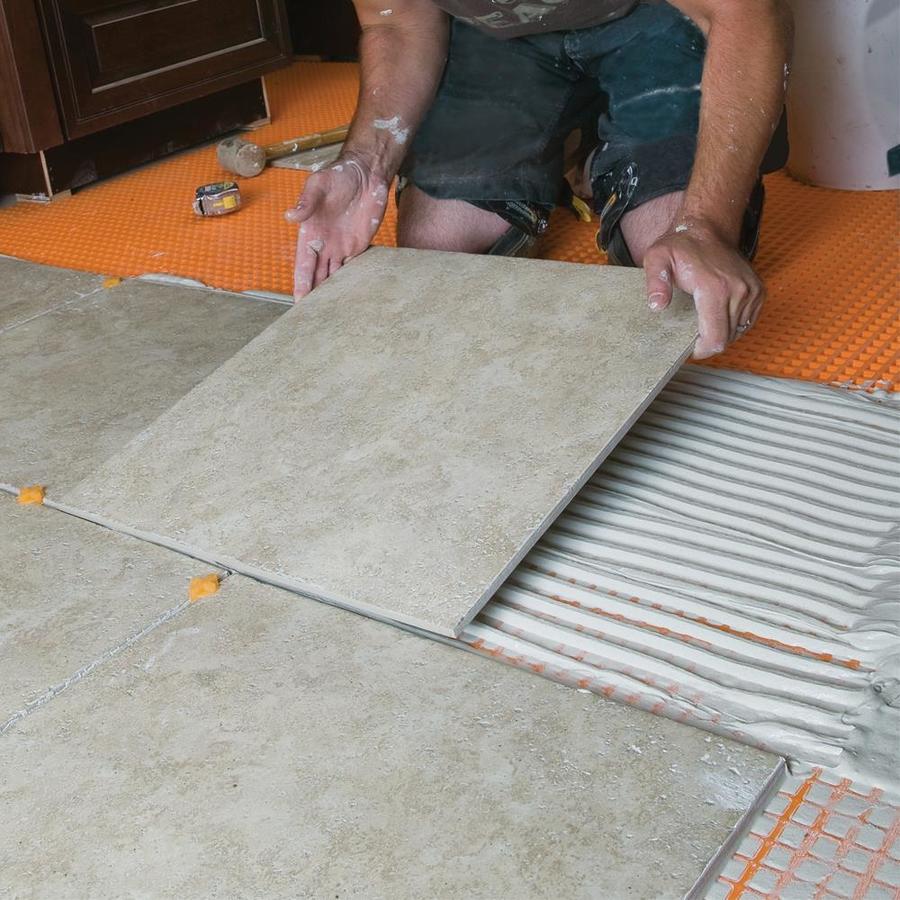 Uncoupling membrane for tiled floor applications Prevents cracked tile and grout and provides waterproofing Ditra is 1/8-in thick and is designed for ceramic and stone tile Install over a wide range of substrates, including plywood/OSB, concrete, gypsum, heated floors, etc Provides uncoupling, waterproofing, vapor management, and heavy load distribution Easy to install and ready to receive tile immediately For commercial and residential applications Roll covers 150-sq ft