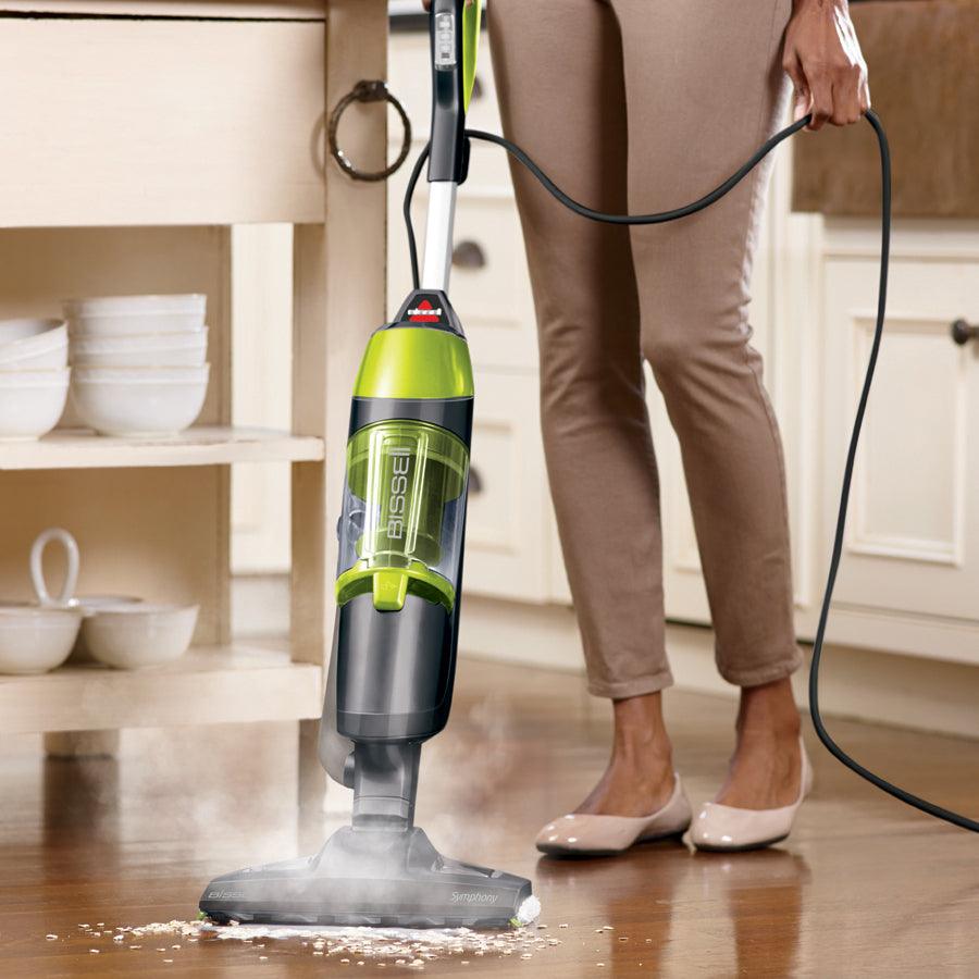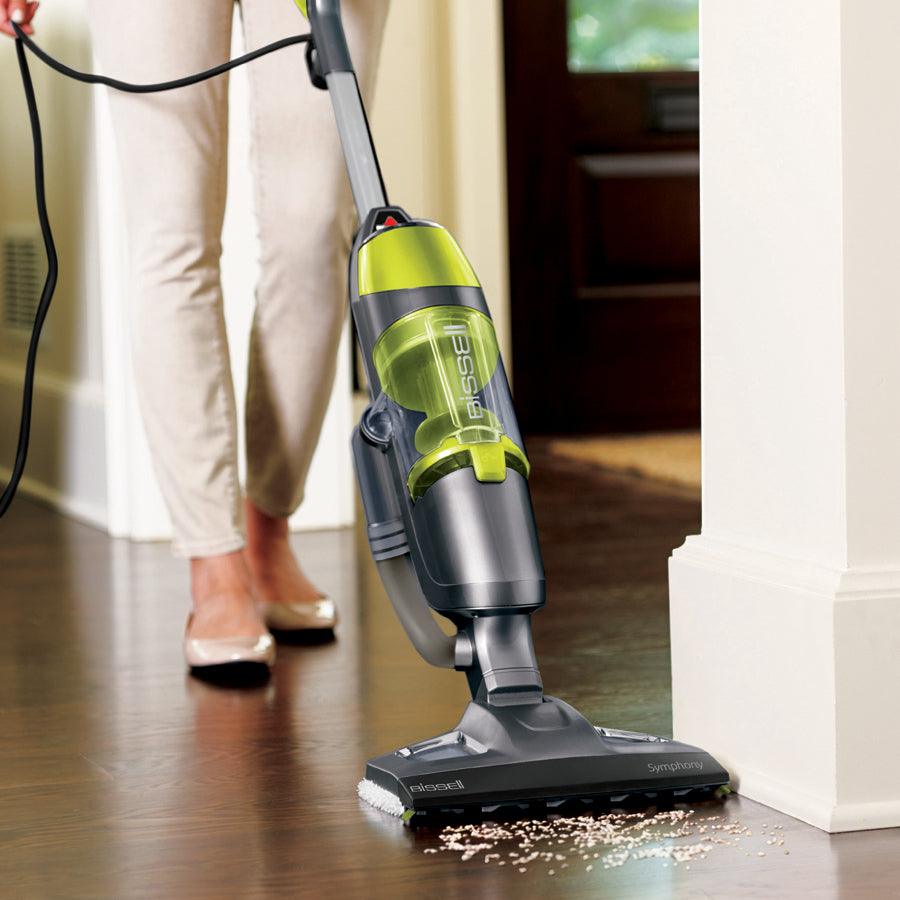 The BISSELL® Symphony™ with Swiffer Bissell® SteamBoost™ Technology, exclusive to ARB265W, offers 4 ways to clean and refresh your home Includes: Swiffer Bissell® SteamBoost™ Kit with 4 disposable pads, 2 washable microfiber pads, 1 carpet glider, and 1 water cup The powerful cyclonic vacuum picks up dry debris on hard surfaces and low pile area rugs Steam clean everyday messes on bare floors with washable microfiber pads Steam clean the messes you want to throw away with Swiffer Bissell® SteamBoost™ Technology disposable pads (replacement pads sold separately, models 510369 and 510372) Refresh your carpets with the power of steam using the included carpet glider