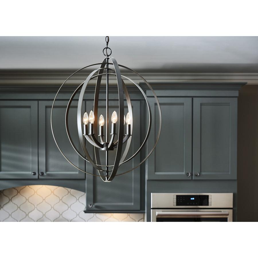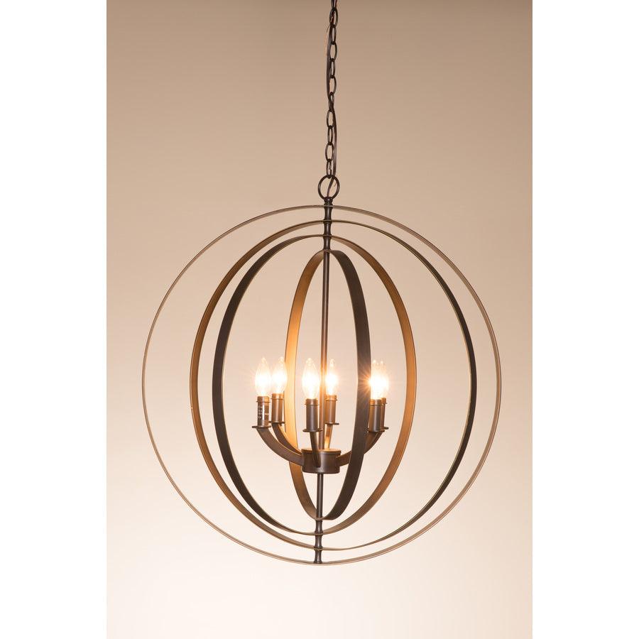 Antique bronze finish chandelier from the Equinox collection is open and airy Faux candlestick lights add an authentic look Six 60-watt B10 bulbs required (not included) 27.75-In L x 30-in H Installed as an uplight only (mounting hardware included) Adjustable chain allows the light to hang down to 105-in Great for transitional style decor UL and CSA listings demonstrate this product has met minimum requirements of widely accepted product safety standards Light is dimmable, so you can create your desired ambiance