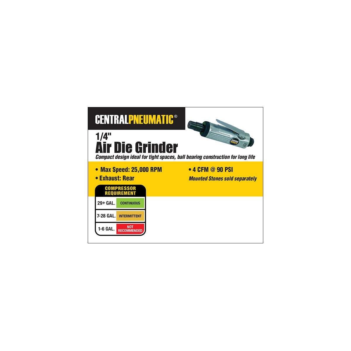 Compact design and one-hand operation give this air die grinder maneuverability in tight spaces. The rear exhaust won't blow dangerous metal chips toward the operator. The air die grinder’s ball bearing construction stands up to rigorous use.