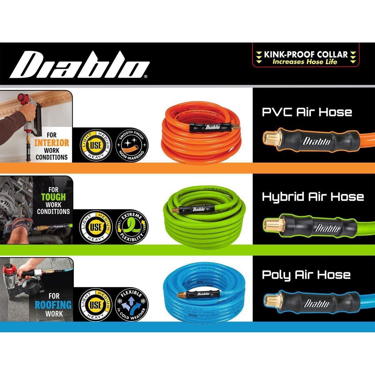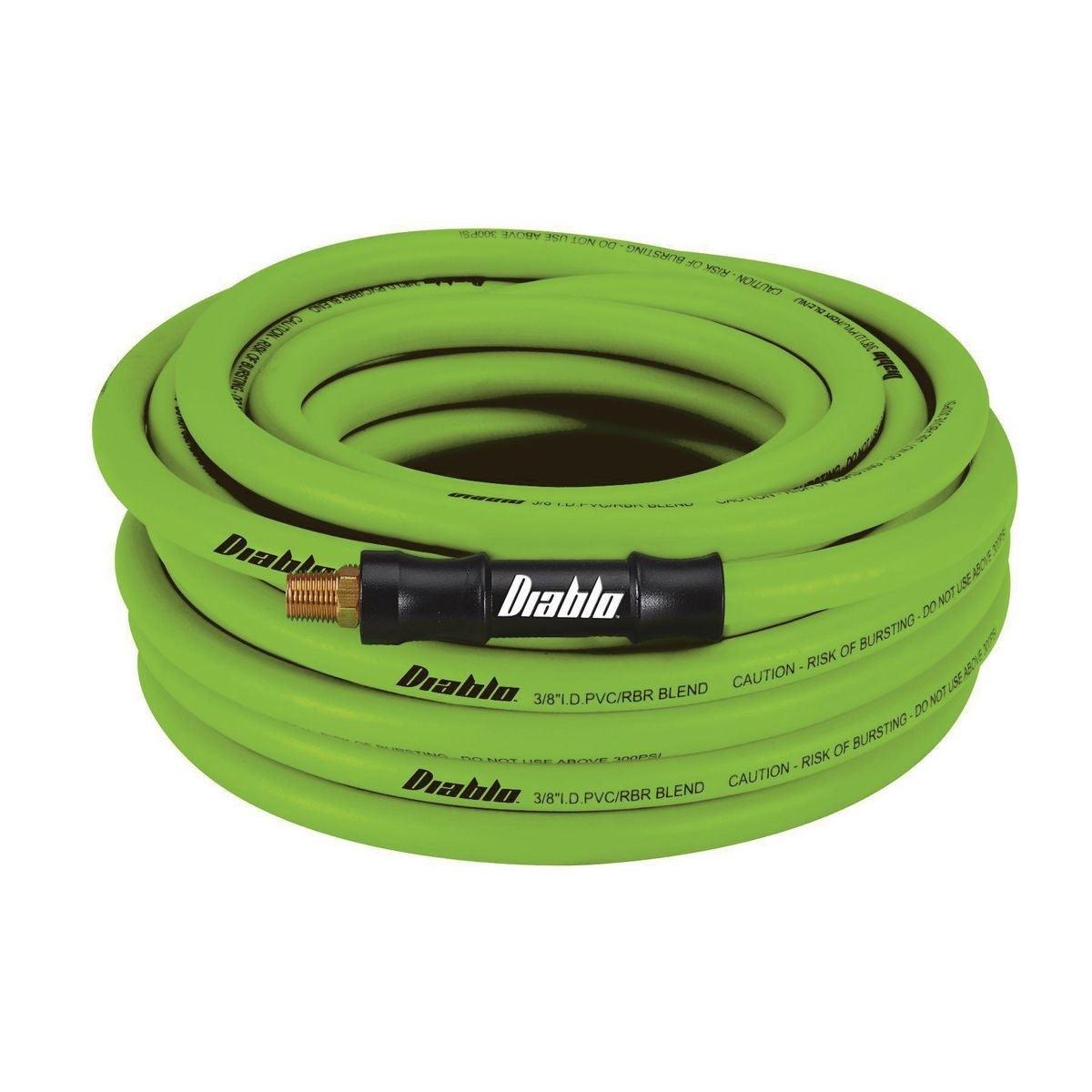 This blended PVC and rubber air hose is lightweight like a standard PVC air hose without sacrificing strength. This tough, flexible hybrid air hose allows you to work in tougher conditions than with other hoses. Features include bend restrictors and brass fittings.