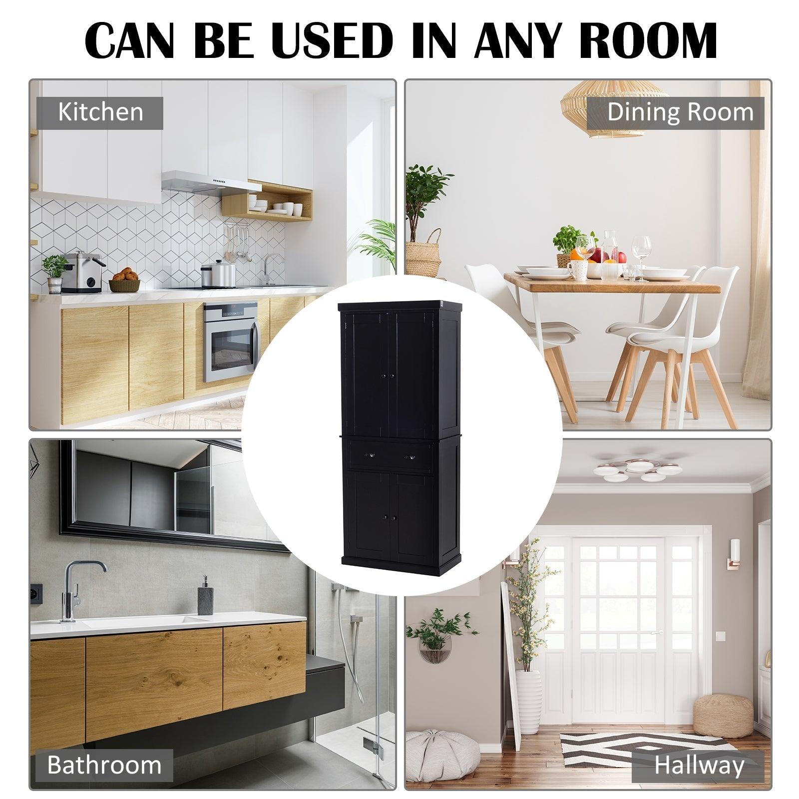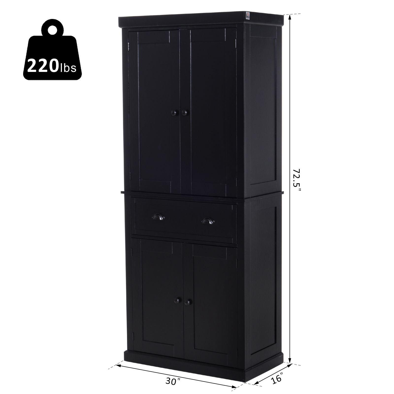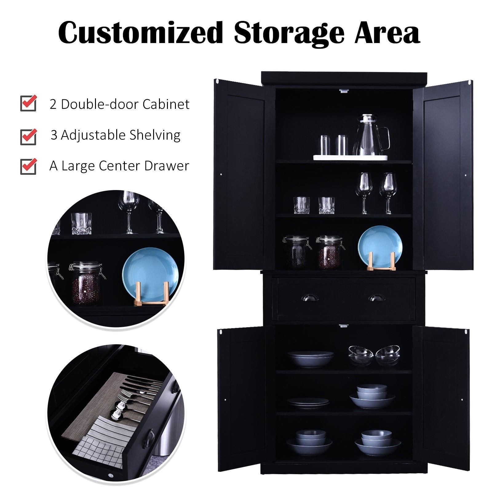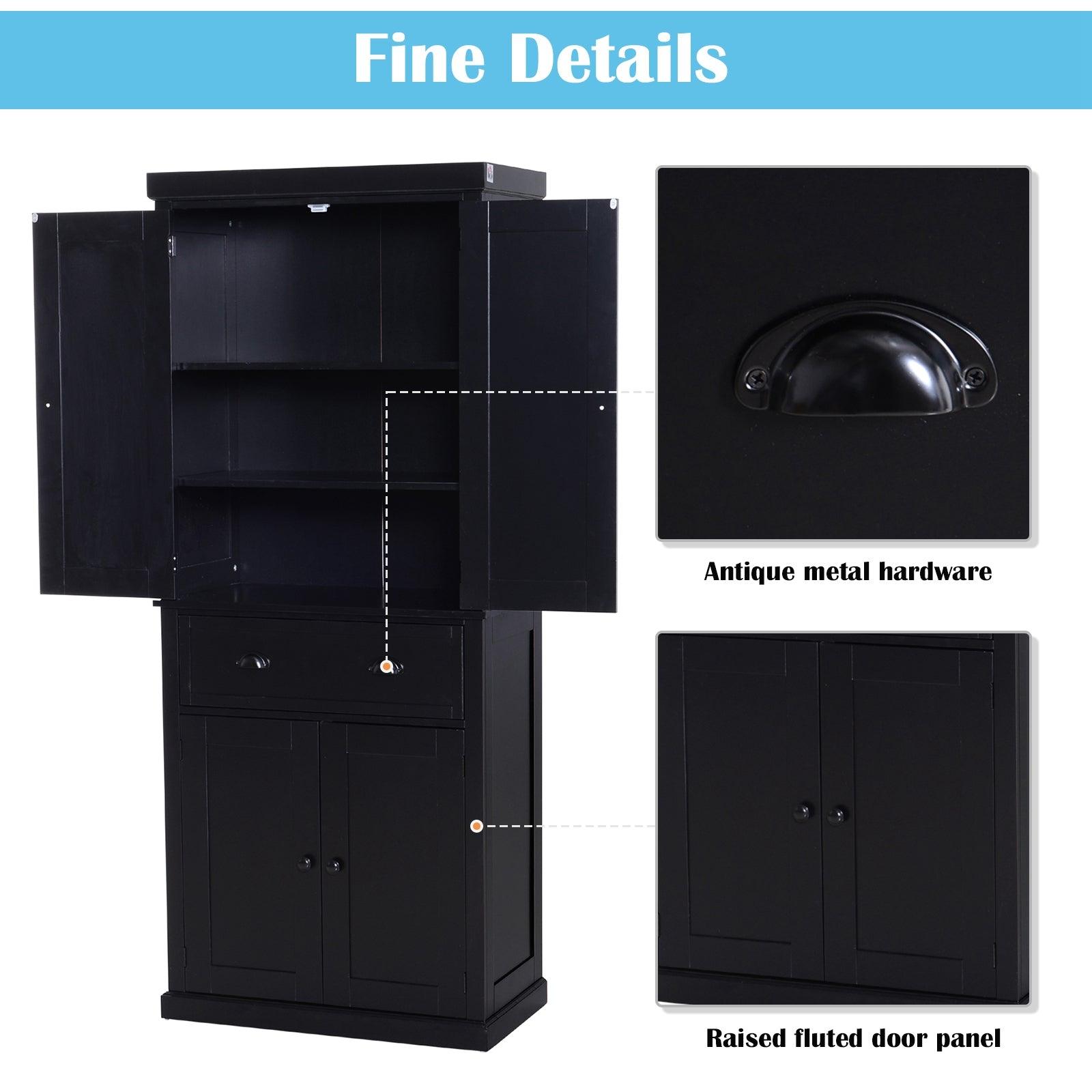 HomCom 72" Traditional Freestanding Kitchen Cupboard Pantry Cabinet with Elegant Colonial Design, Antique Hardware