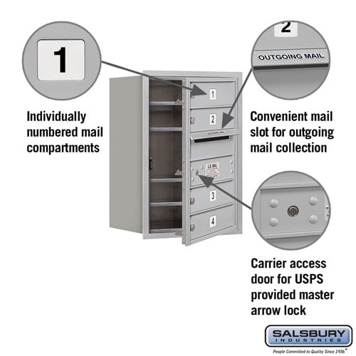Outgoing Mail Compartment Includes weather protection hood and USPS master lock access door