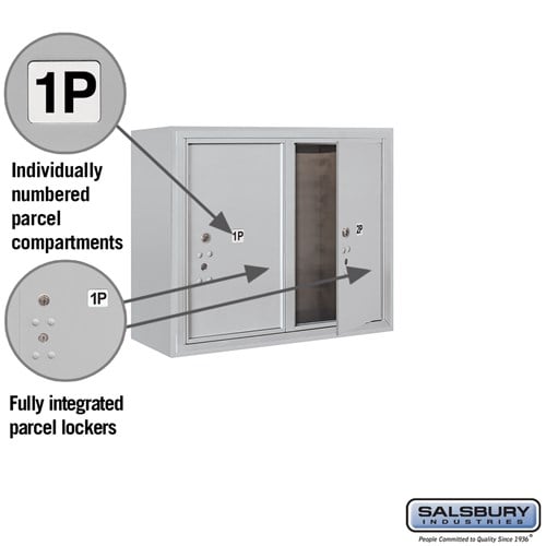 6 Door High Surface Mounted Parcel Locker with 2 Parcel Lockers in Aluminum with USPS Access