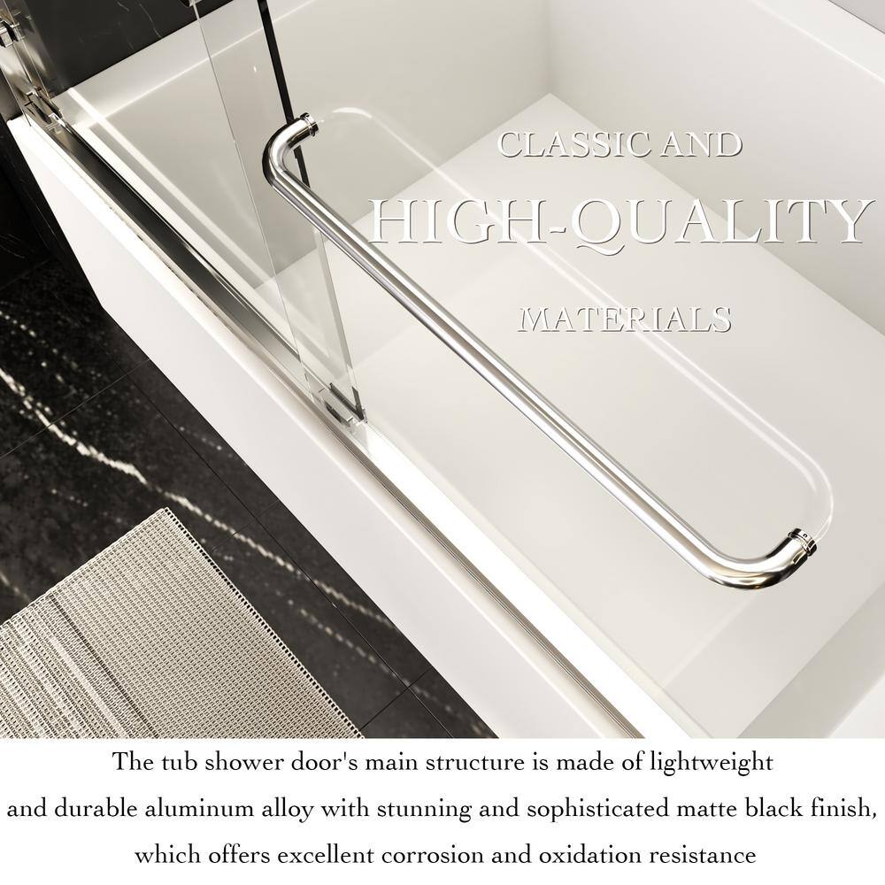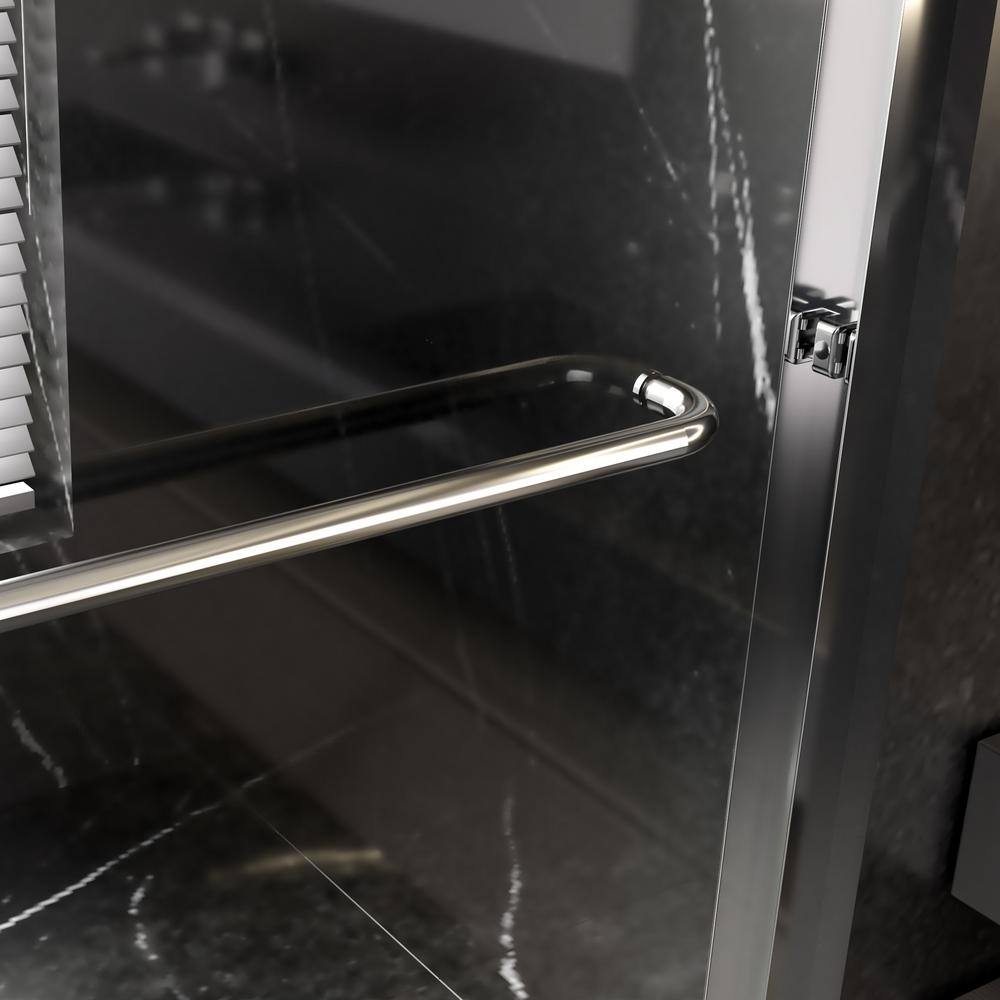 Upgrade your bathroom with this elegant 60-inch wide and 70-inch high semi-frameless shower door. Crafted from robust tempered glass with an explosion-proof film, it offers both safety and aesthetics. The chrome aluminum alloy frame ensures durability and a sleek look, accentuating any modern bathroom.