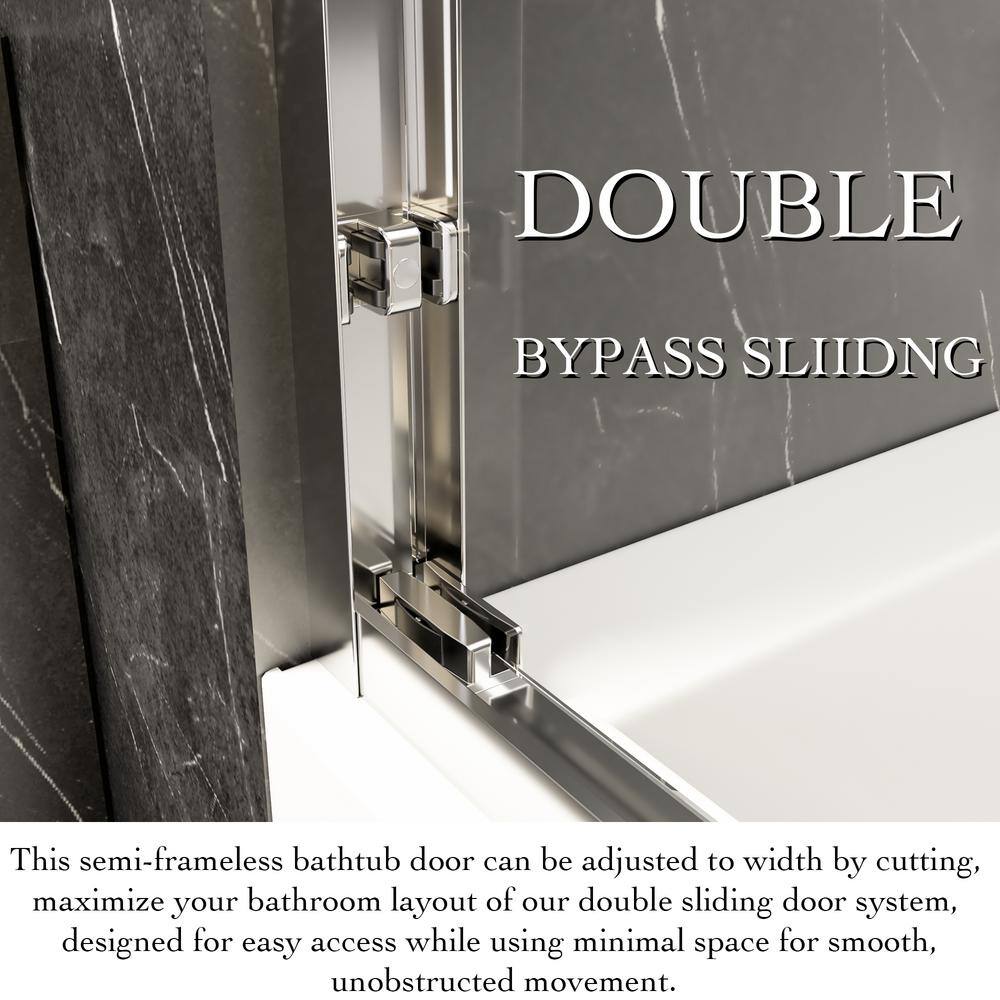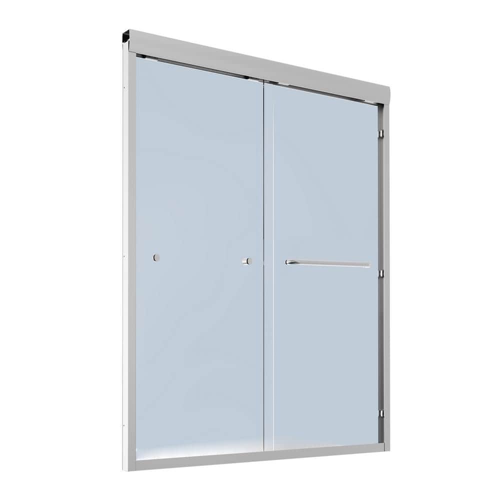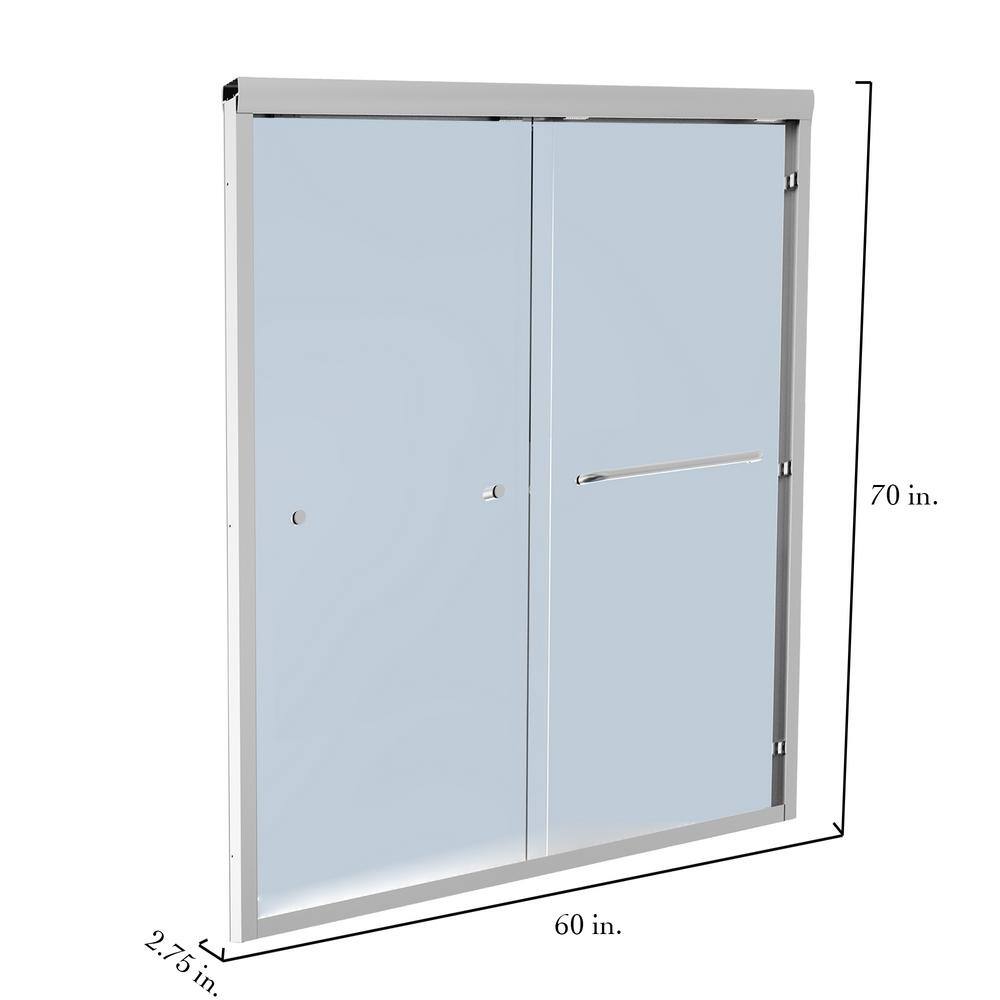 60 in. W x 70 in. H Semi-Frameless Double Sliding shower door in Chrome with Explosion Proof Film Tempered Glass