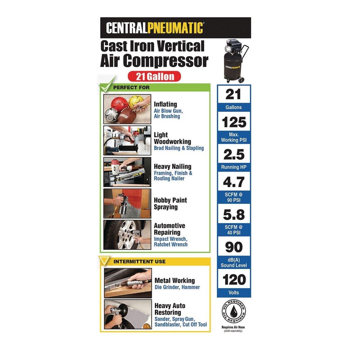 21 gallon 2.5 HP 125 PSI Cast Iron Vertical Air Compressor