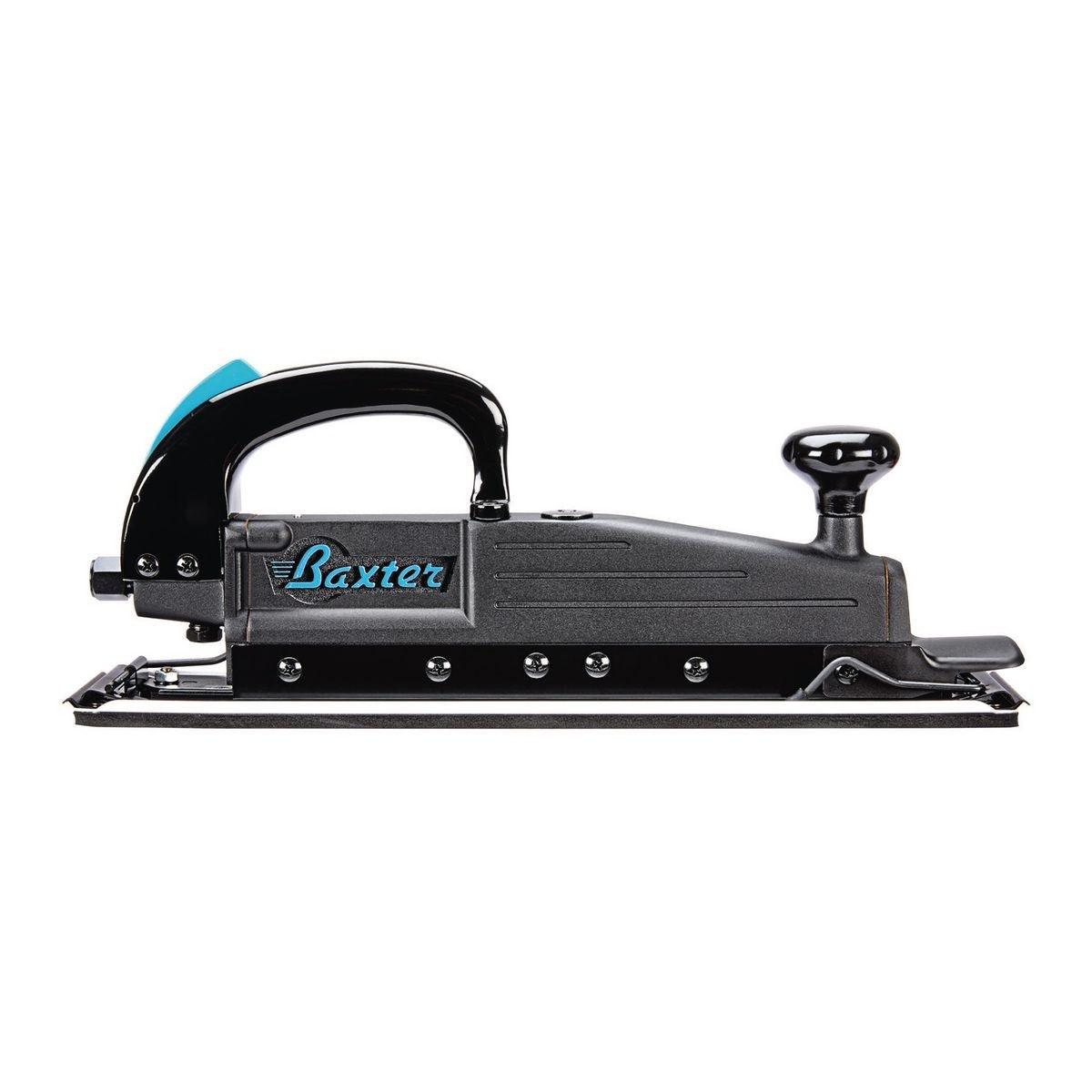 The Baxter® Professional Straight Line Sander won't bog down or stall during the heaviest use. Forward and reverse dual cylinders power through the stroke for super smooth sanding action. Cover large areas quickly with a huge 1 inch stroke. Rugged construction designed for daily use. High-tension spring clamps keep paper locked in place. Fast and easy paper changes.