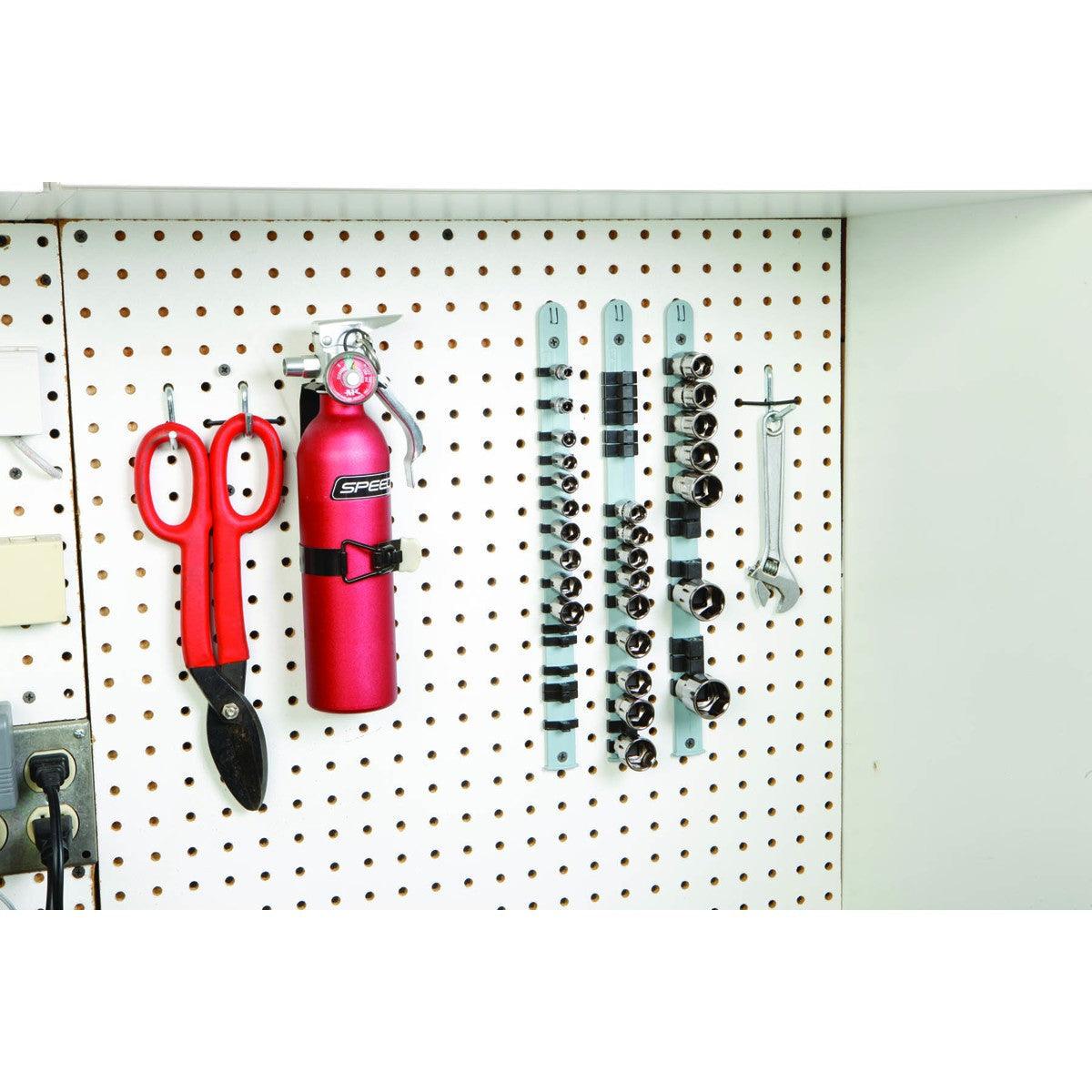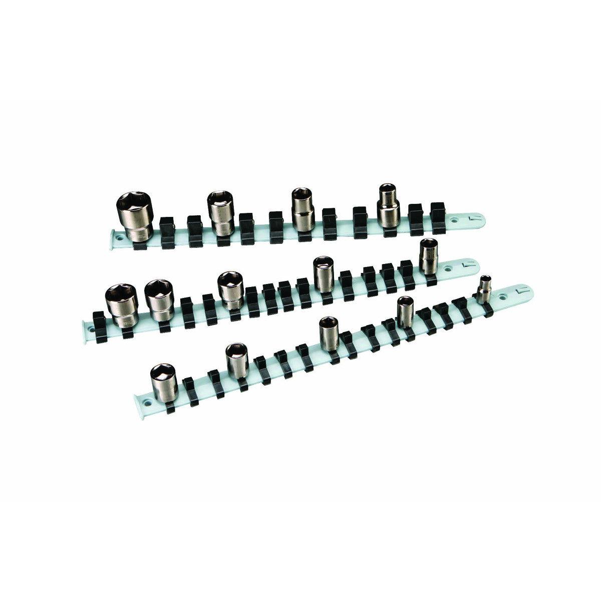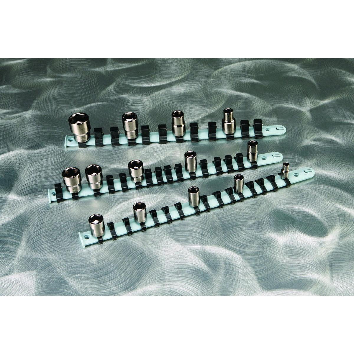 This socket holder can be wall mounted or placed in your tool chest drawer to keep sockets organized for quick and easy identification. The socket organizer fits both standard and deep sockets for your convenience. All together this socket holder stores up to 28 different sockets.