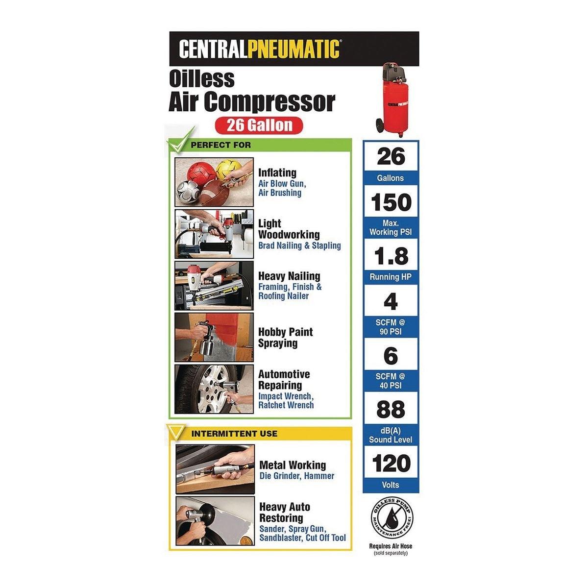 26 gallon 1.8 HP 150 PSI Oil-Free Air Compressor