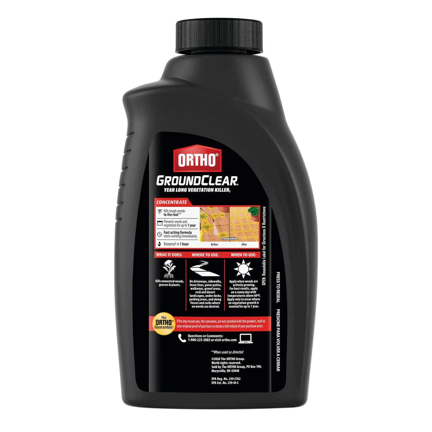 - Ortho GroundClear Year Long Vegetation Killer1 is a concentrate formula that kills weeds and prevents any re-growth for up to 1 year with a single application