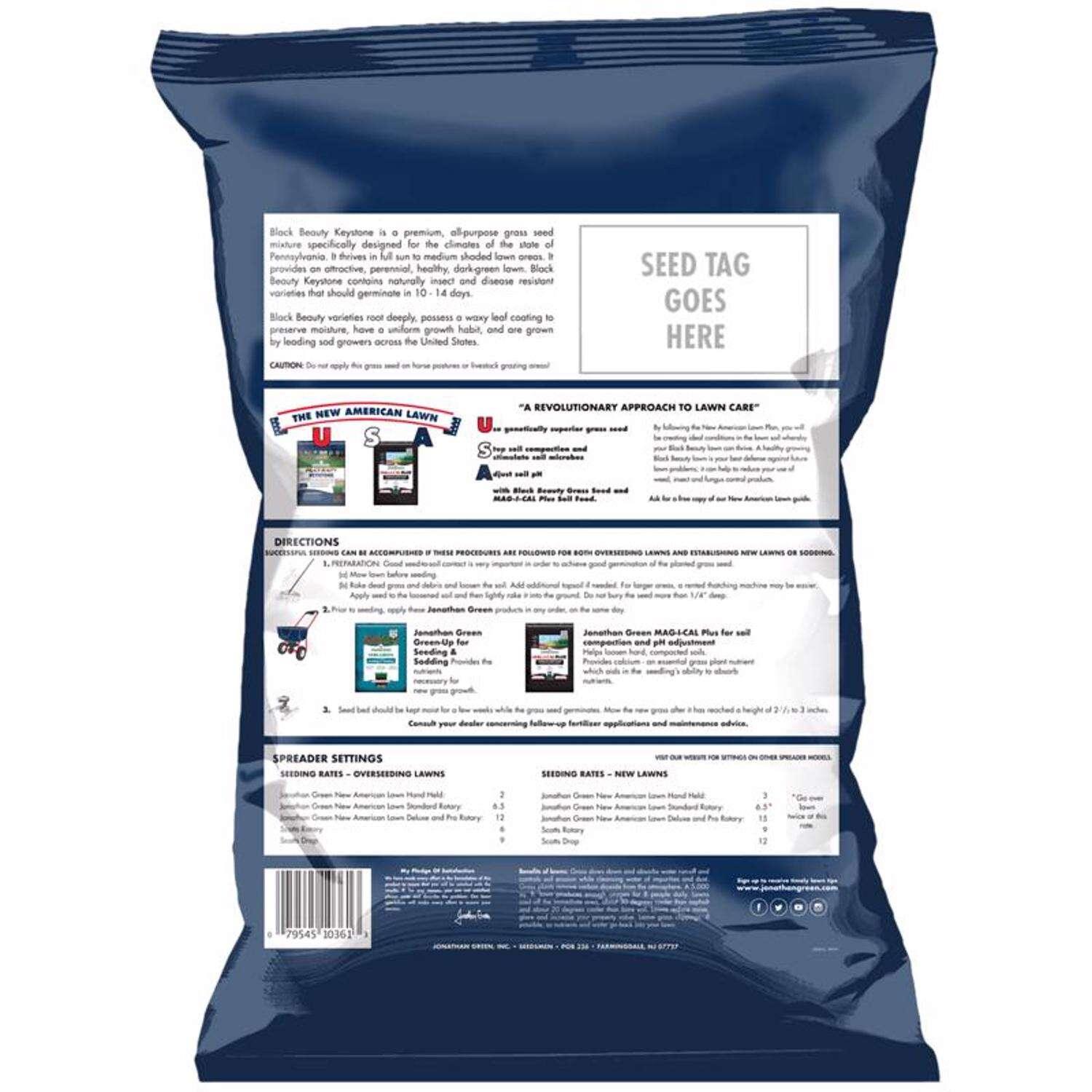 Black Beauty Keystone Pennsylvania Grass Seed is a premium, all-purpose grass seed mixture specifically designed for the climates of the state of Pennsylvania. It thrives in full sun to medium shaded lawn areas. It provides an attractive, perennial, healthy, dark-green lawn. Black Beauty Keystone is naturally insect and disease-resistant. Grass seed germinates in 10 - 14 days. Black Beauty varieties root deeply, possess a waxy leaf coating to preserve moisture, have a uniform growth habit and are grown by leading sod growers across the United States.