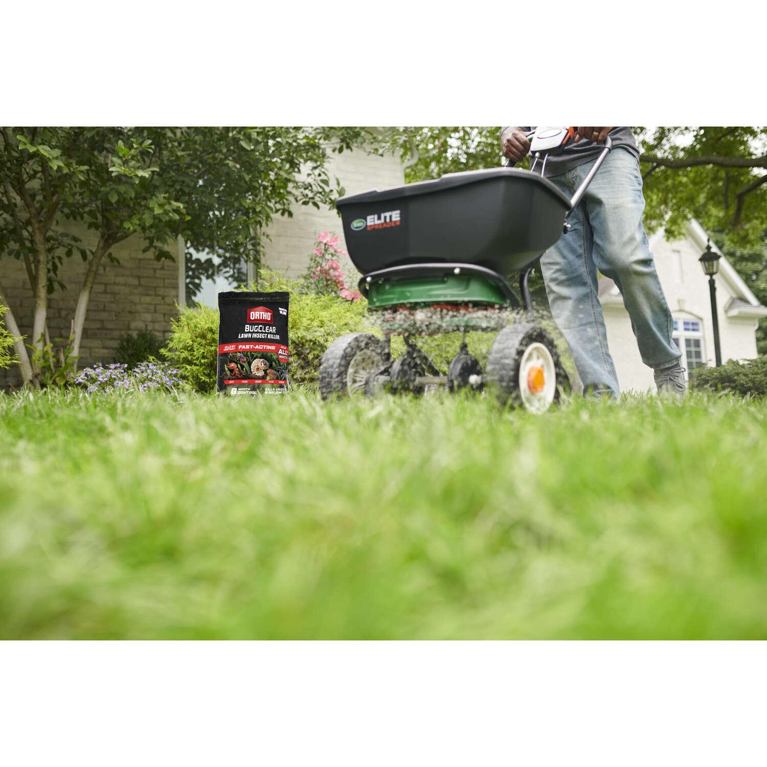 Protect your backyard and enjoy your lawn with Ortho® BugClear™ Lawn Insect Killer1 Granules. The fast-acting insect killer starts to work in minutes (except against fire ants) and kills by contact to protect against all listed insects including ants, spiders, ticks, armyworms, fleas and grubs. Use on your lawn, ornamentals, home perimeter, vegetable garden and flower beds to protect against pesky insects, killing them outside before they come inside (refer to product label for complete lists). Works above and below the ground. Create a long-lasting bug barrier for up to 6-months of ant control and 3-months of residual protection against spiders, ticks, beetles, and other listed insects (see product label for full list). Apply the yard bug killer early in the spring before infestation or whenever insect activity or damage is first observed. For best results, apply with a Scotts® spreader and then immediately water in granules. Each 10-lb. bag treats up to 16,500 sq. ft.