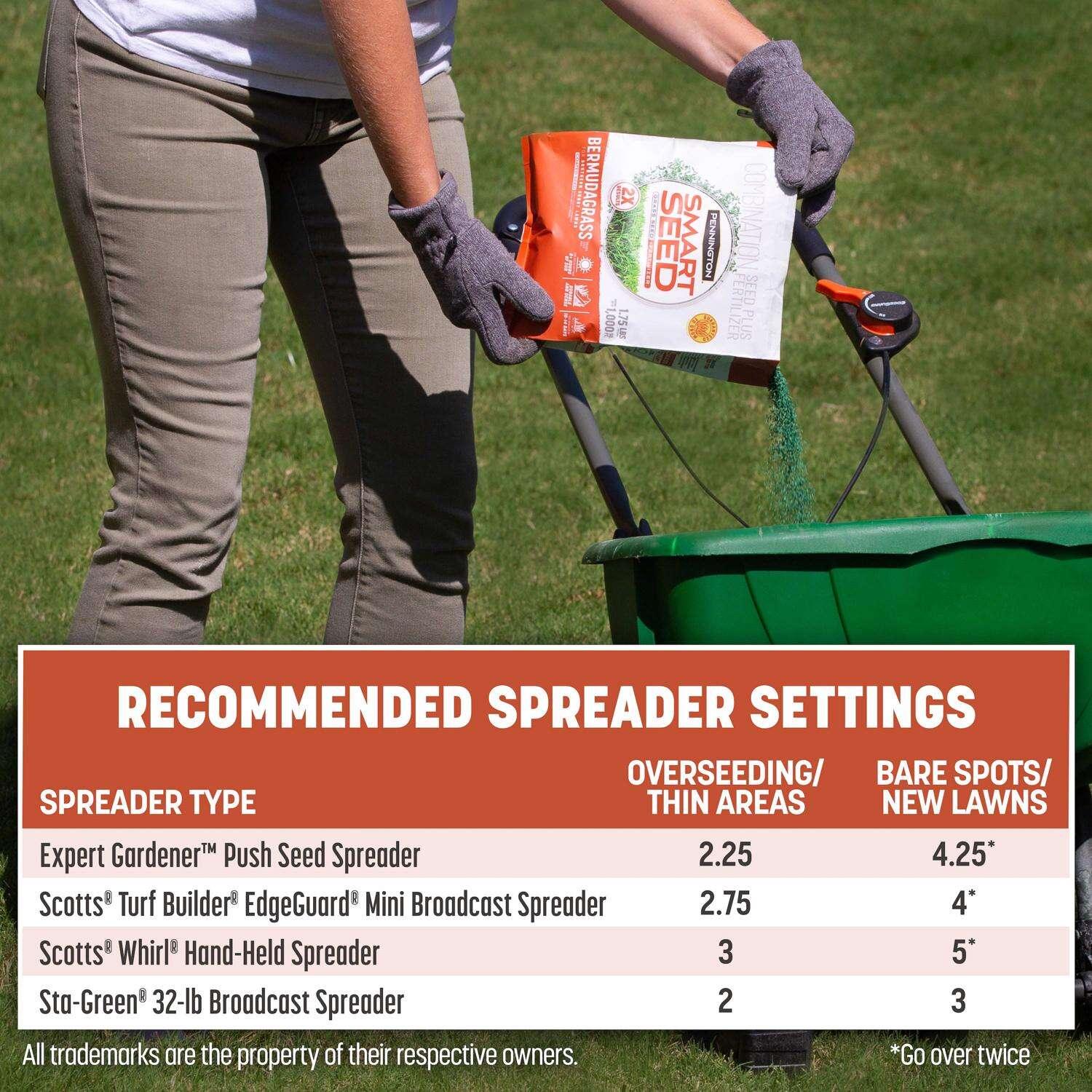 Bermudagrass is ideal for southern lawns that bask in full sun for eight or more hours each day. Along with exceptional heat, drought and traffic tolerance, Pennington Smart Seed Bermudagrass offers fast establishment and strong coverage for 2x results. Containing just the right amount of fertilizer, this Bermuda grass seed mix is formulated to help Bermuda lawns start strong and crowd out weeds. Plant it in spring or early summer and see results in 10 to 14 days. A 1.75-pound bag covers up to 1,000 square feet for overseeding an existing lawn and 500 square feet for starting a new lawn from scratch. Growing a lawn from ordinary Bermudagrass seed can require a lot of patience. At Pennington, we understand you want beauty and results without the wait. Thanks to innovation and seed technology, Pennington Smart Seed Bermudagrass + Fertilizer will give you twice the results and coverage compared to Bermudagrass alone. The Smart Seed mix includes a temporary, cool-season companion grass that provides stability to the soil and early color, then fades away as the heat arrives. You also get earlier germination and faster establishment-compared to Bermudagrass alone.
