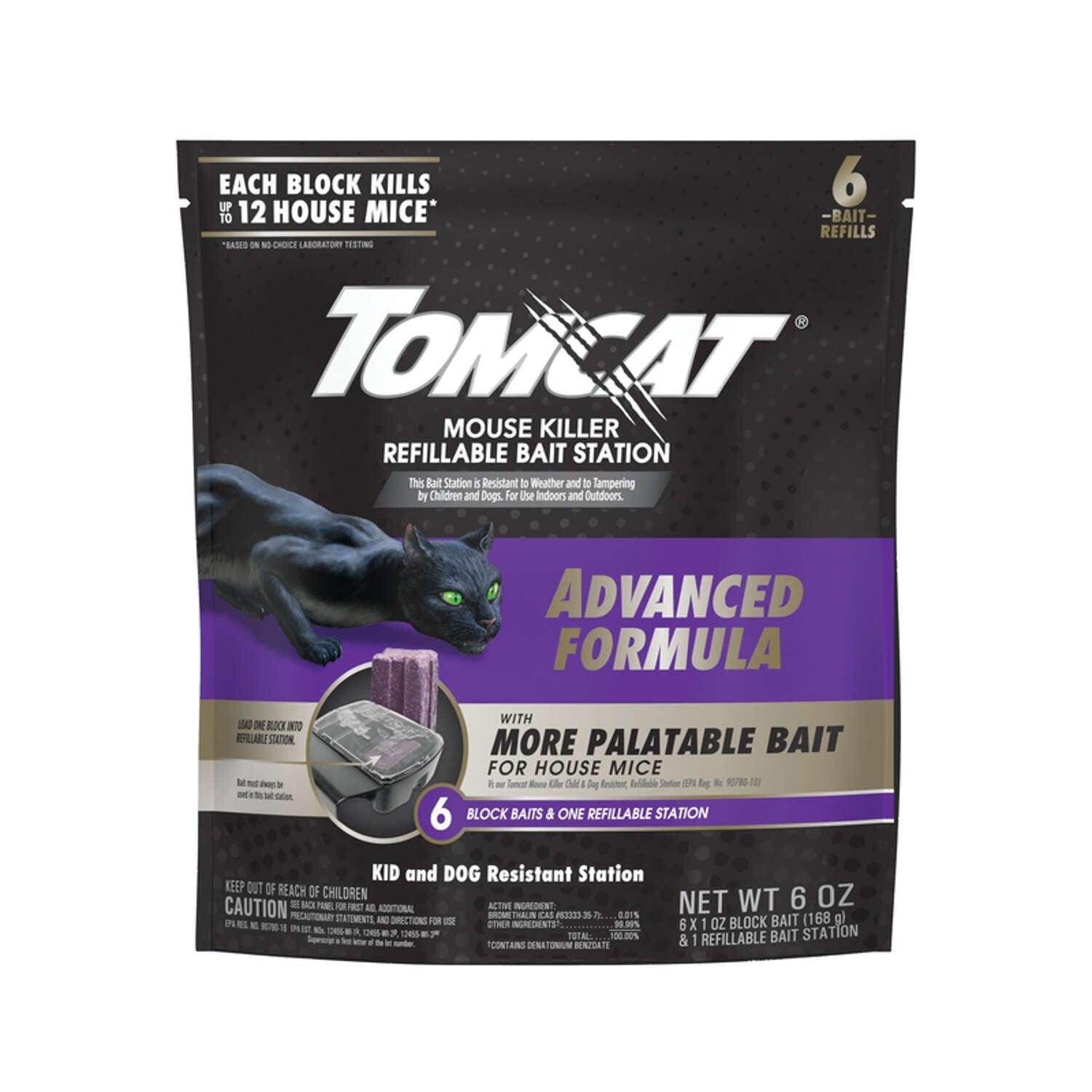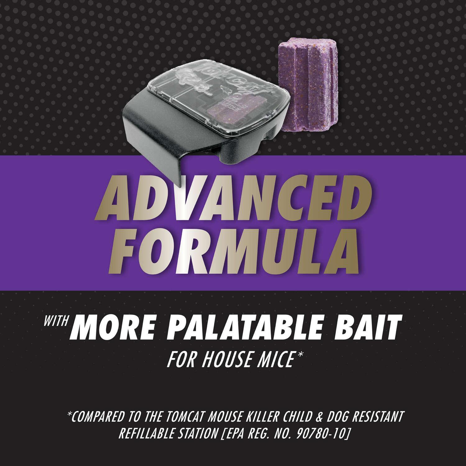 - Tomcat Mouse Killer Refillable Bait Station - Advanced Formula is formulated with more palatable bait for house mice (compared to the Tomcat Mouse Killer Child & Dog Resistant Refillable Station [EPA Reg. No. 90780-10])