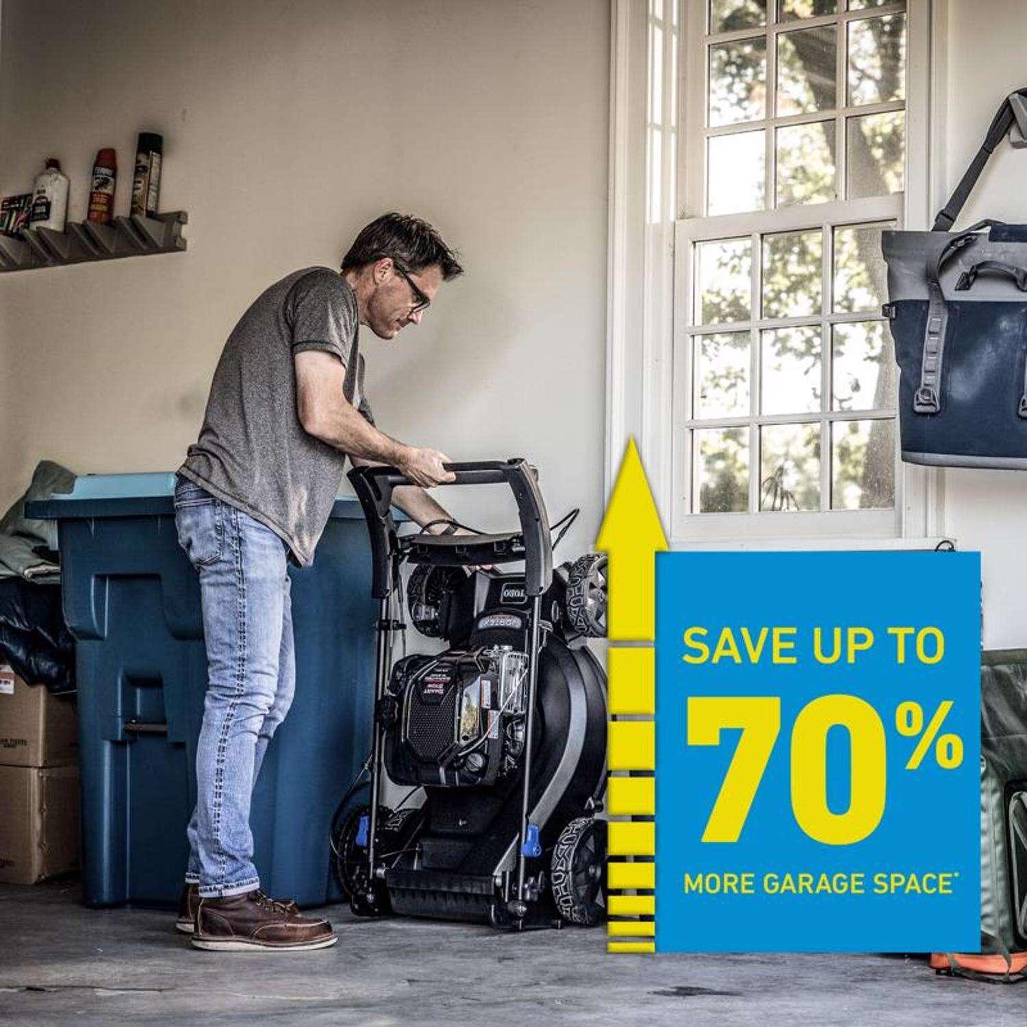 We're not going to lie; you're gonna get a lot of double-takes when you're mowing with this suave-looking bad boy. Little do they know this hungry herbivore is a wiz at helping protect the earth, reducing your water and fertilizer use with the Super Recycler's Cutting System. Take mowing creature comforts to the next level with flex Handle suspension and hassle-free maintenance. When you're done, lock and store your Toro practically anywhere in your garage or shed with SmartStow. And you can rest easy knowing Toro stands behind its mowers with a 5-year full warranty. Count on it. Side-Discharge chute available to consumers who register their mower online at www.Toro.com