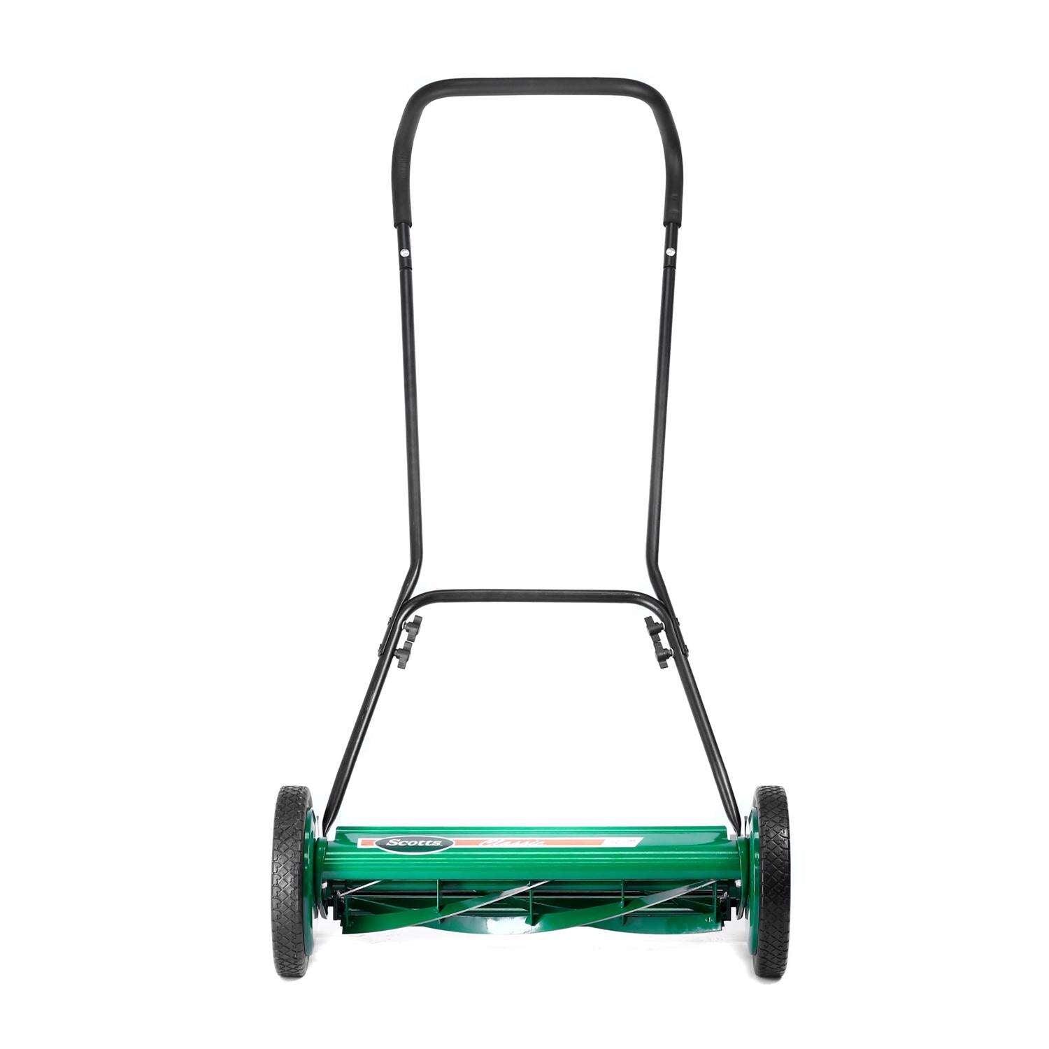 This Scott's 20 inch Classic Push Reel Mower features dual wheel tracking with 10 inch easy roll ball bearing composite wheels in the front with radial treads and 6 inch tracking wheels in the back, which eliminates drag and enhances maneuverability. Quick snap height adjusters make for easy height adjustment from 1 inch to 3 inch while on the go. Heat treated blades stay sharper longer and make a quality cut every time producing a manicured looking lawn. No tool assembly.
